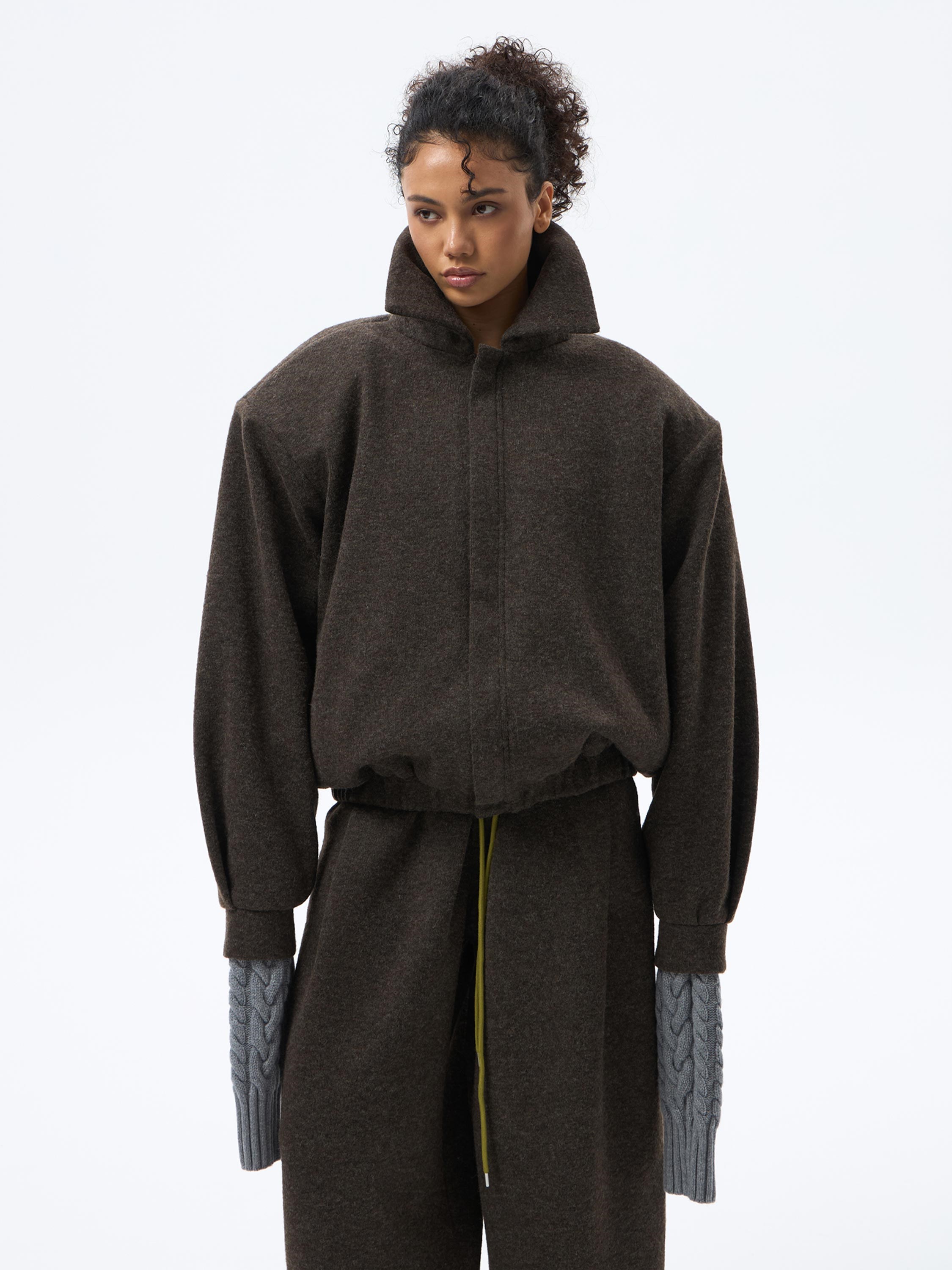 В новой коллекции бренда усовершенствованный привычный всем базовый бомбер. В нашей интерпретации модель теперь приобрела объём с увеличением и без того гигантской линии плеча.