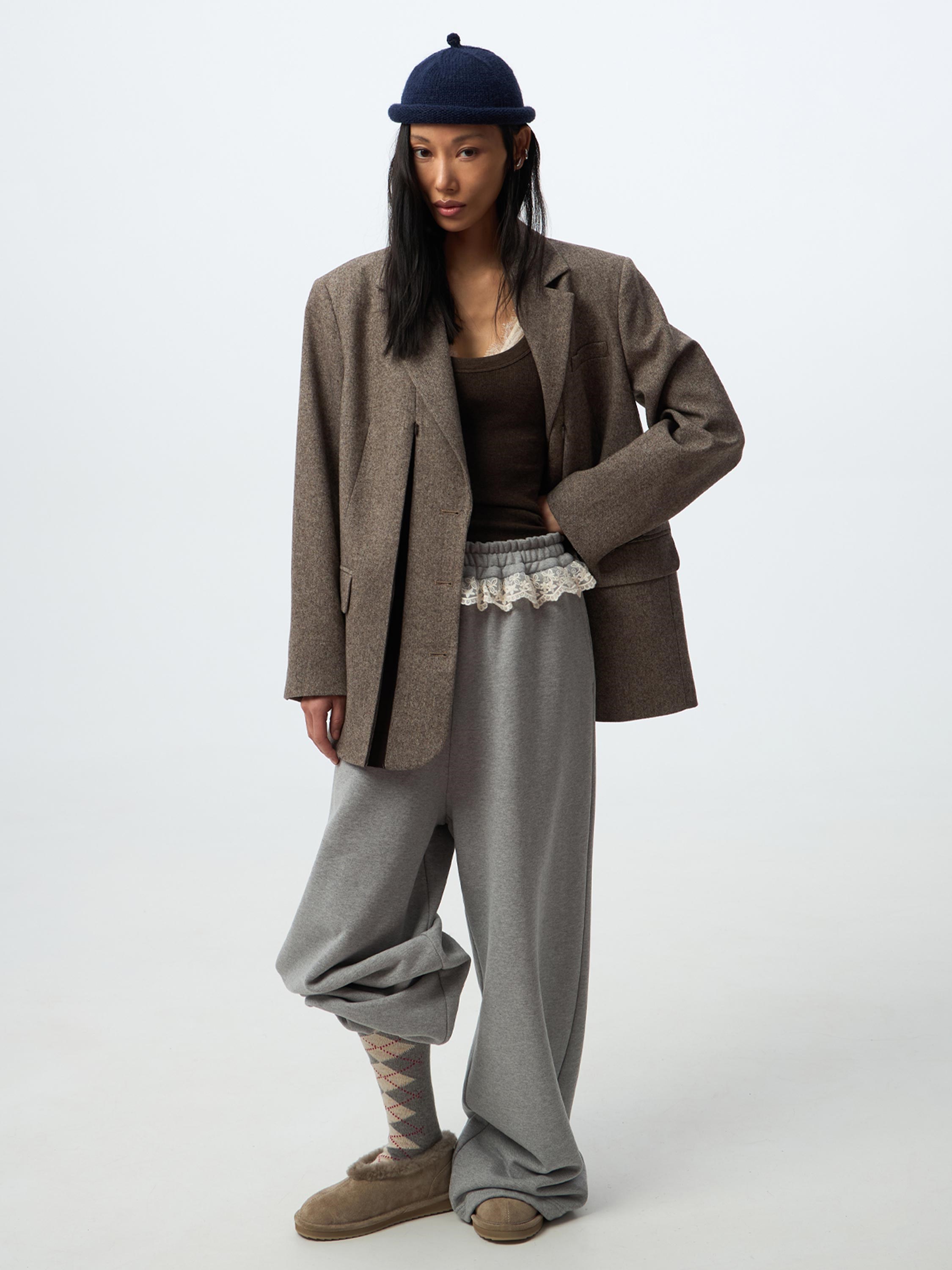 Брюки из футера турецкого производства — современная интерпретация будуарного шика с расслабленным настроением.