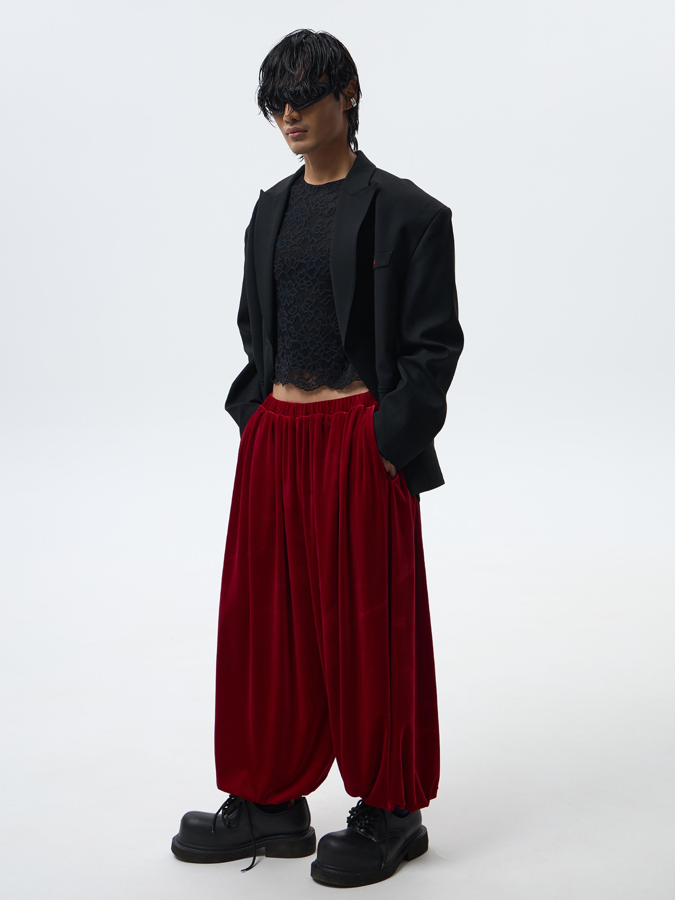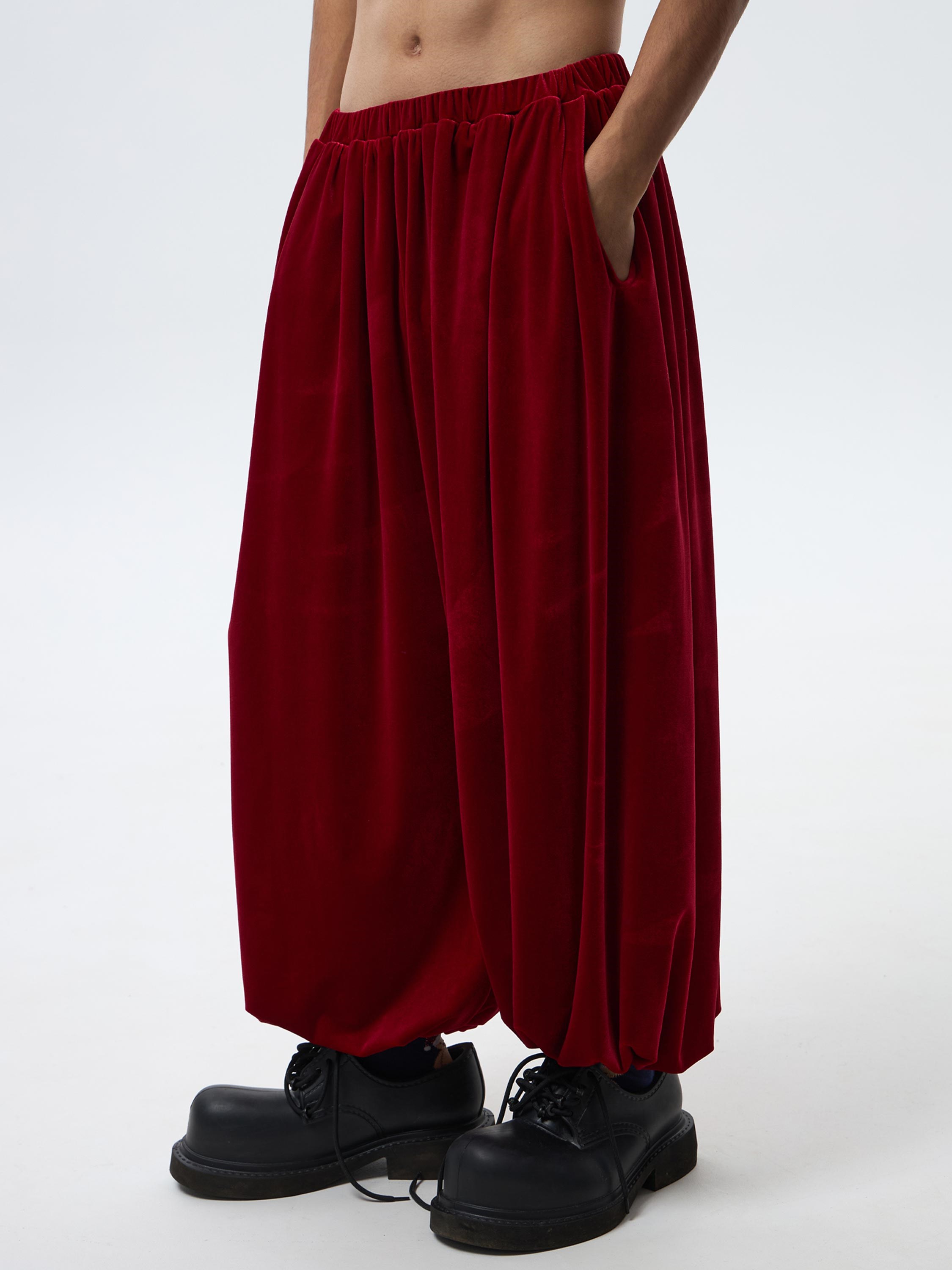 Широкие брюки-шаровары из роскошной бархатной ткани. Объёмный силуэт брюк гарантируют комфортную посадку изделия.