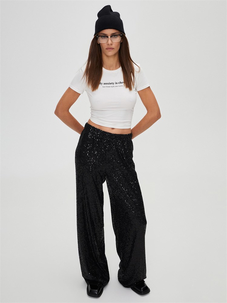 Брюки женские широкого кроя из пайеток идеально подойдут на любое праздничное мероприятие: Новый год, корпоратив, День рождения, свадьбу.