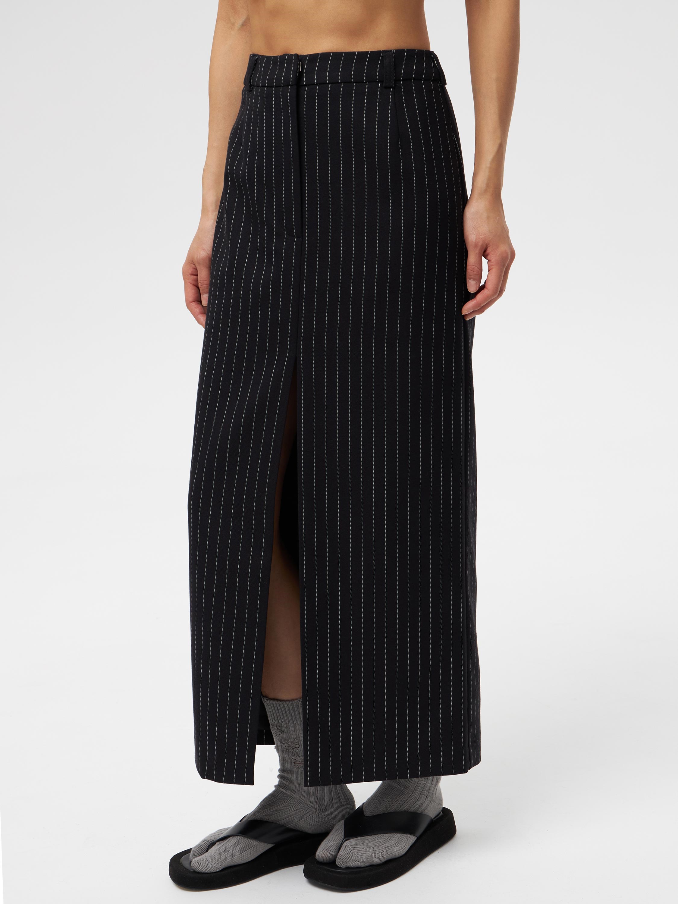 Юбка макси со средне-низкой посадкой и с глубоким разрезом спереди.