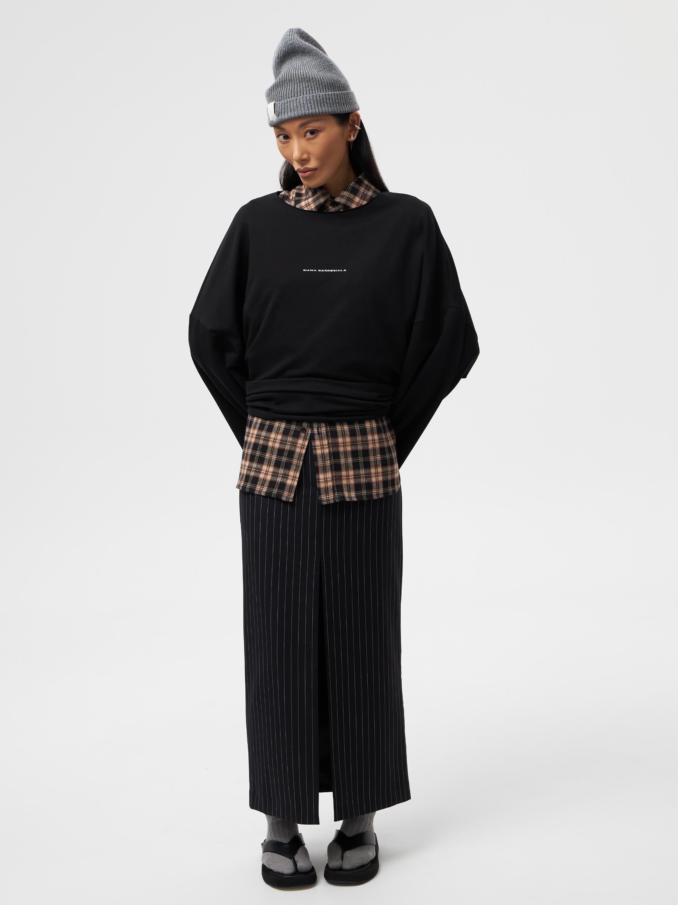 Для юбки выбрана плотная итальянская поливискоза с бархатистым эффектом, ткань комфортно облегает силуэт.
