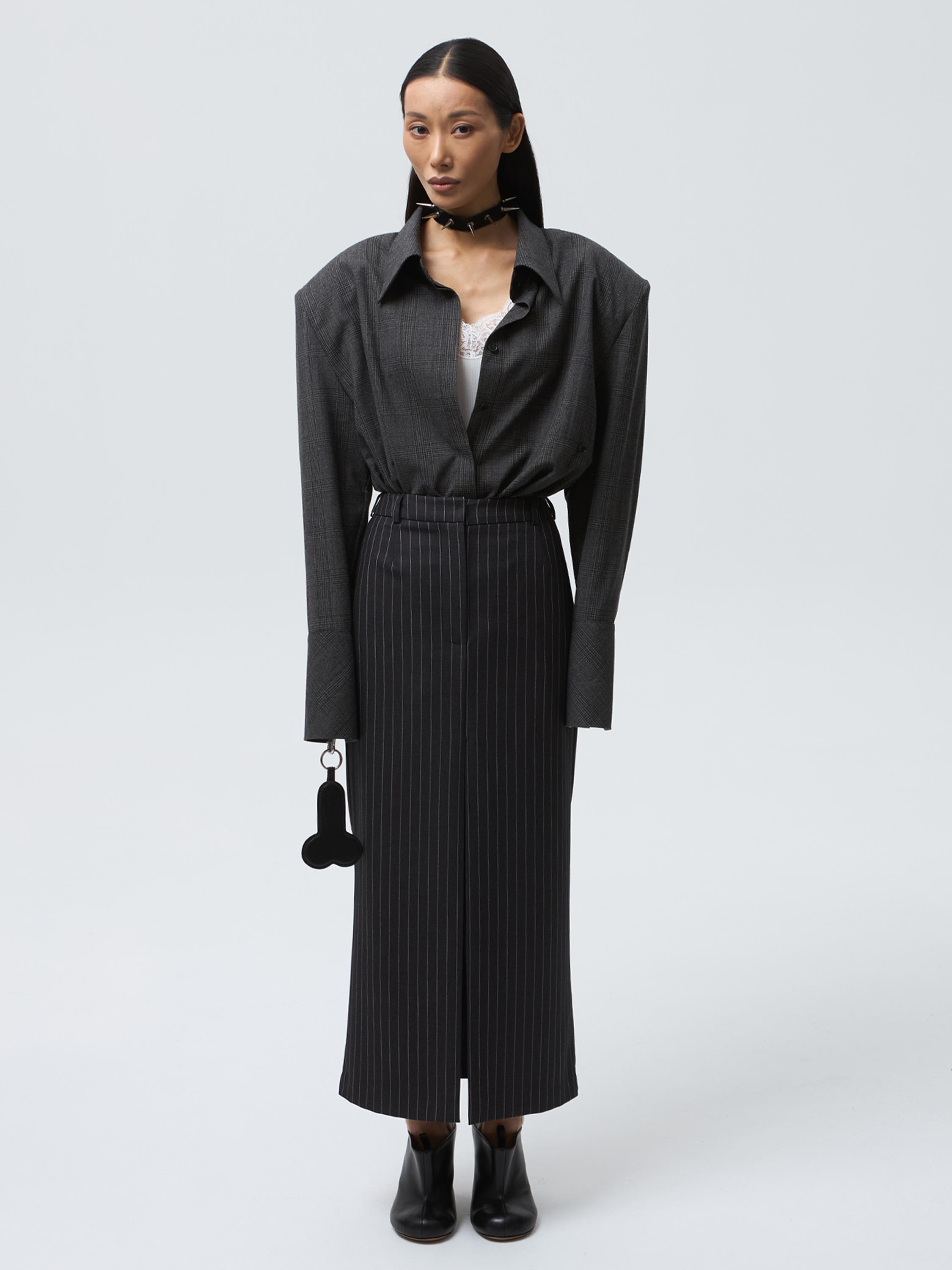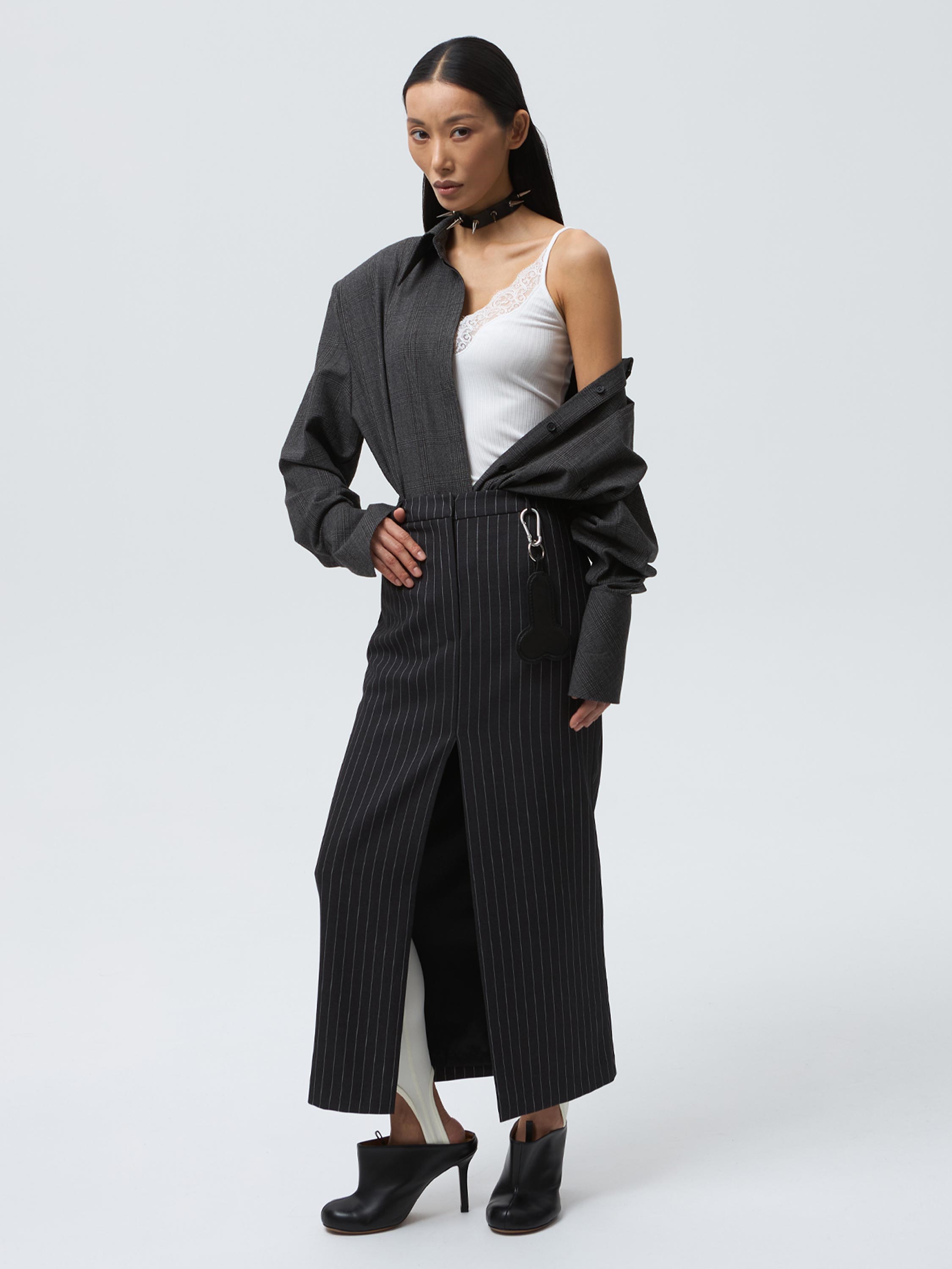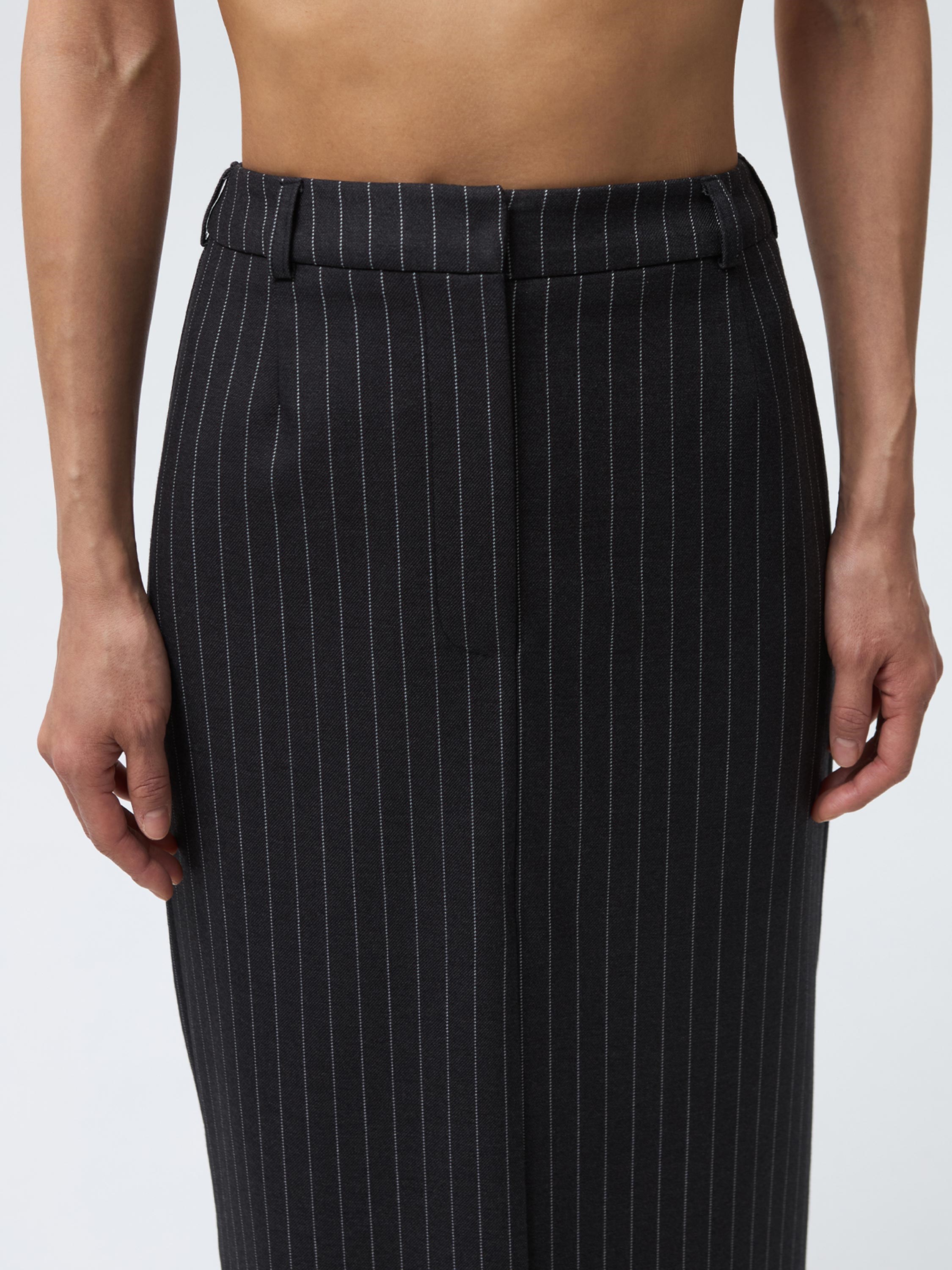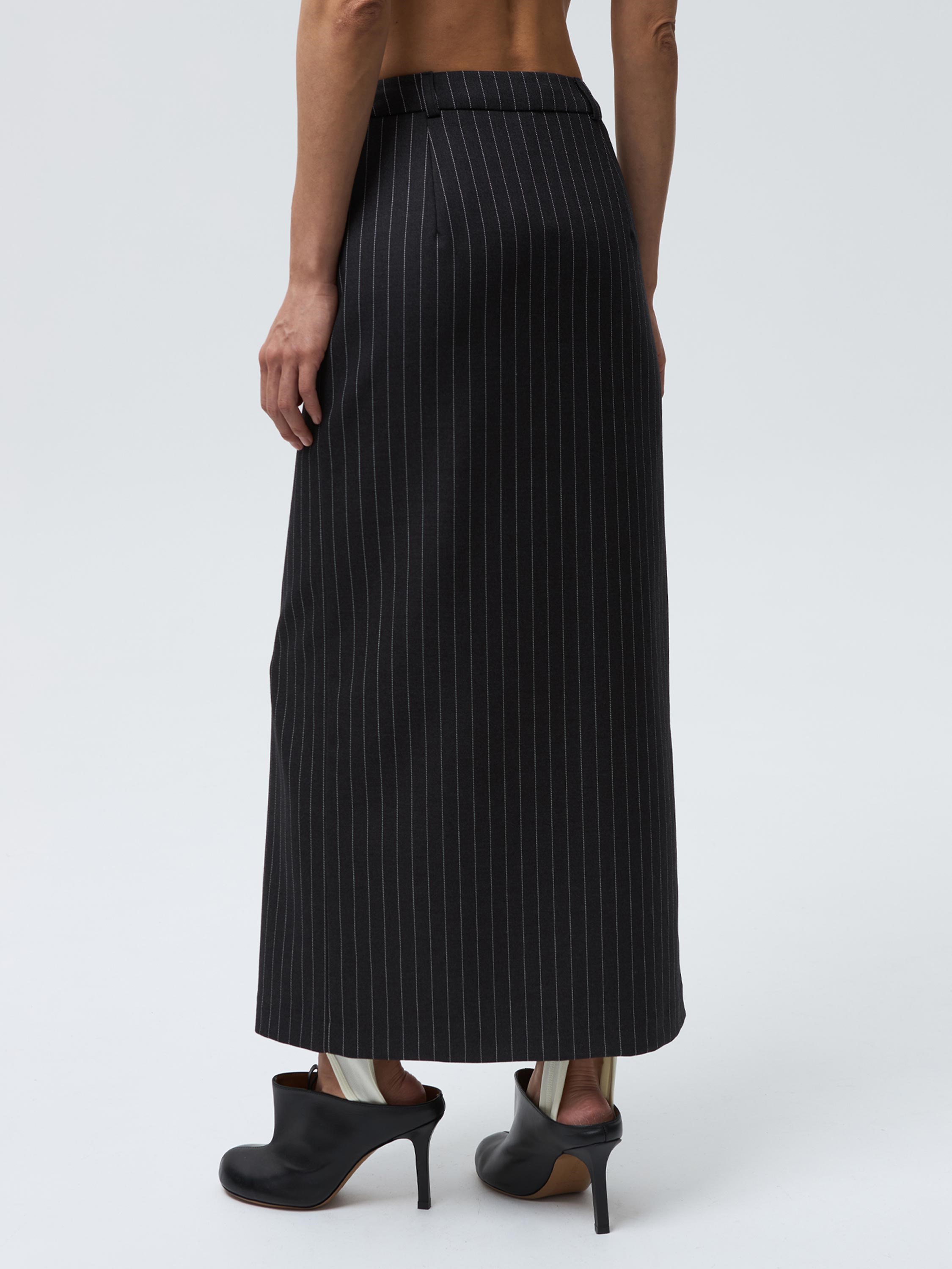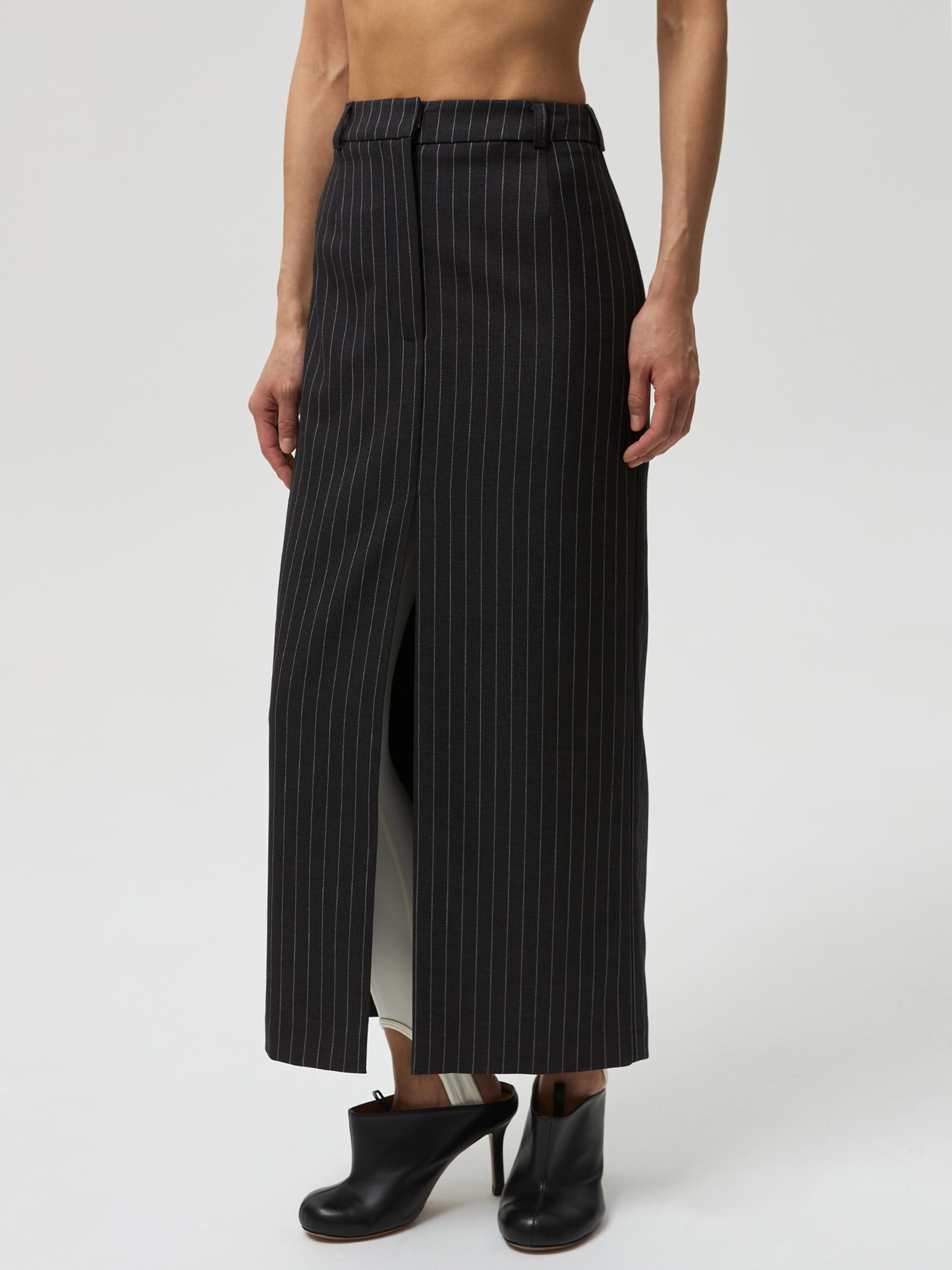 Юбка макси со средне-низкой посадкой и с глубоким разрезом спереди.