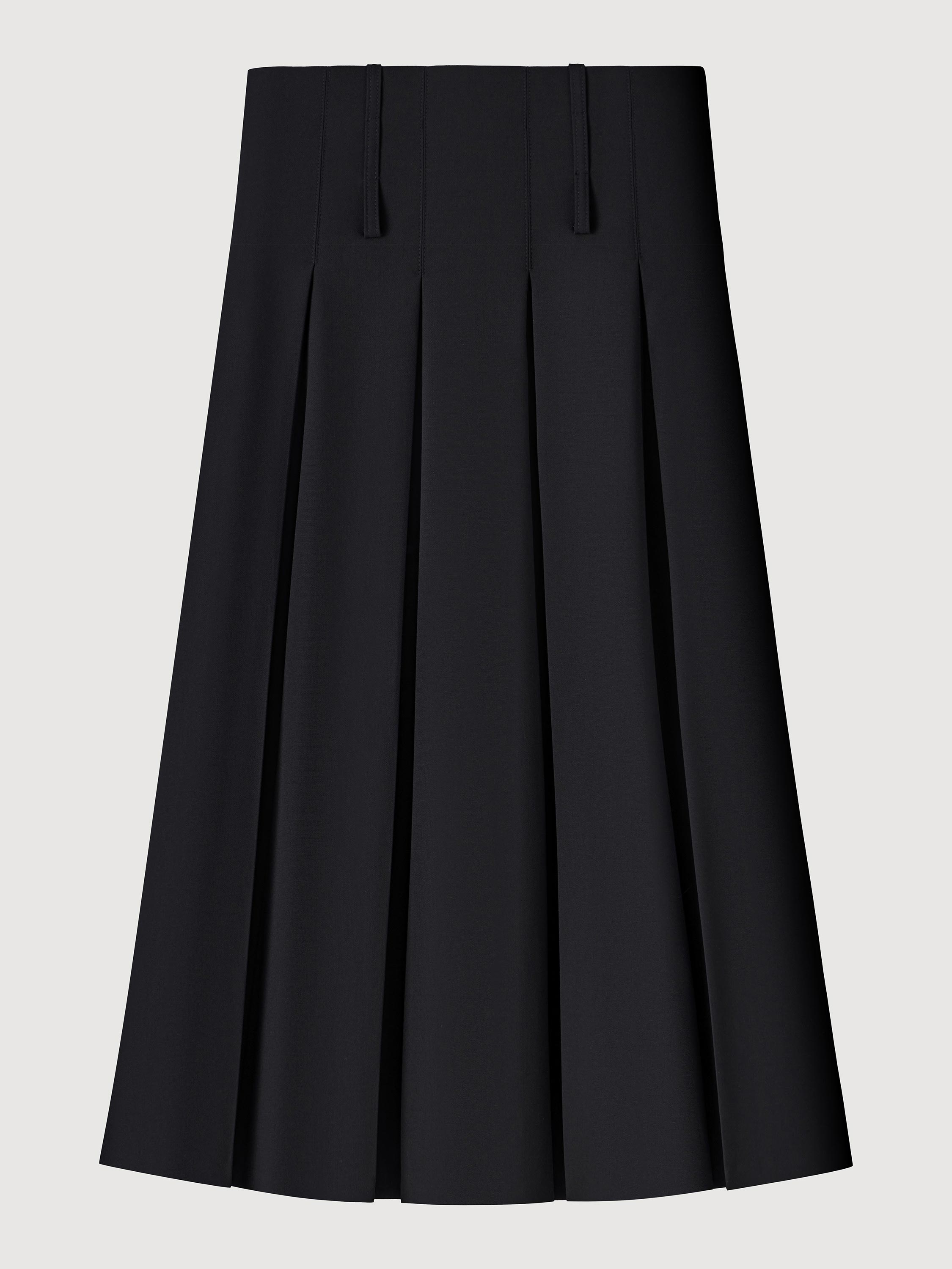 Мы стремились создать плиссированную юбку, избегая стандартного А-силуэта. Так появилась широкая юбка с застроченными встречными складками, создающими эффект корсета и визуально стройнящими область бёдер.