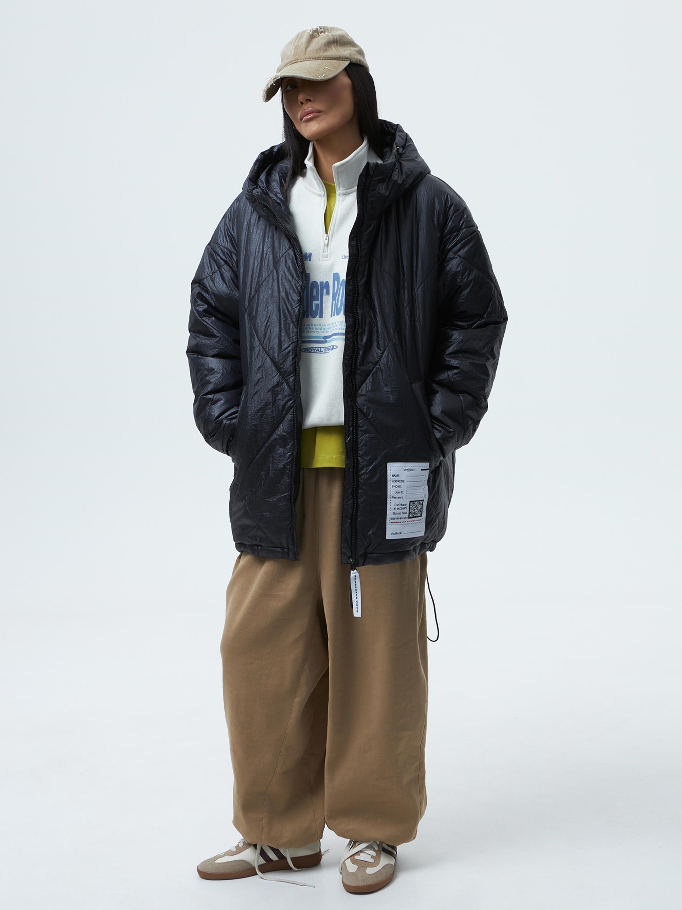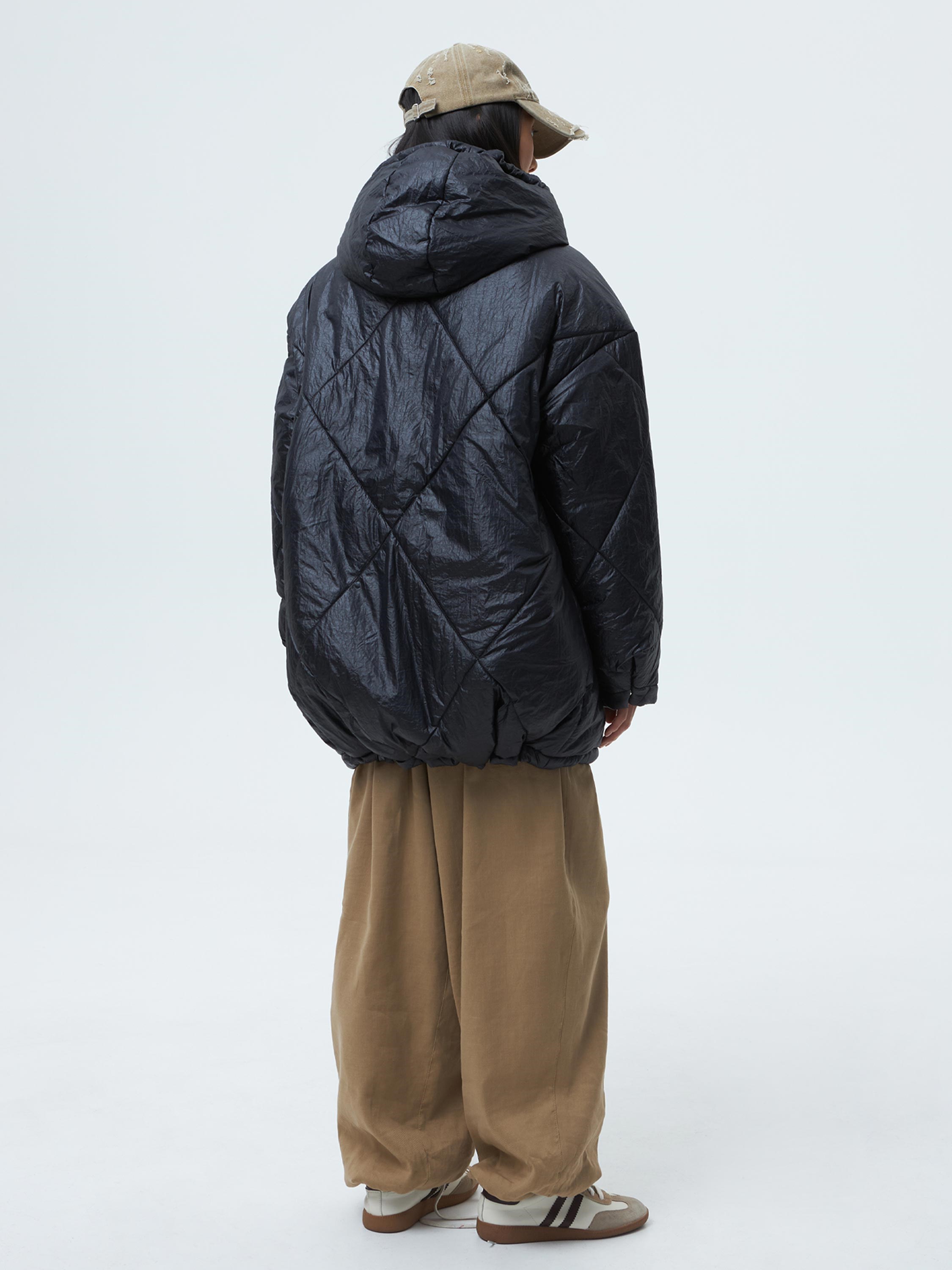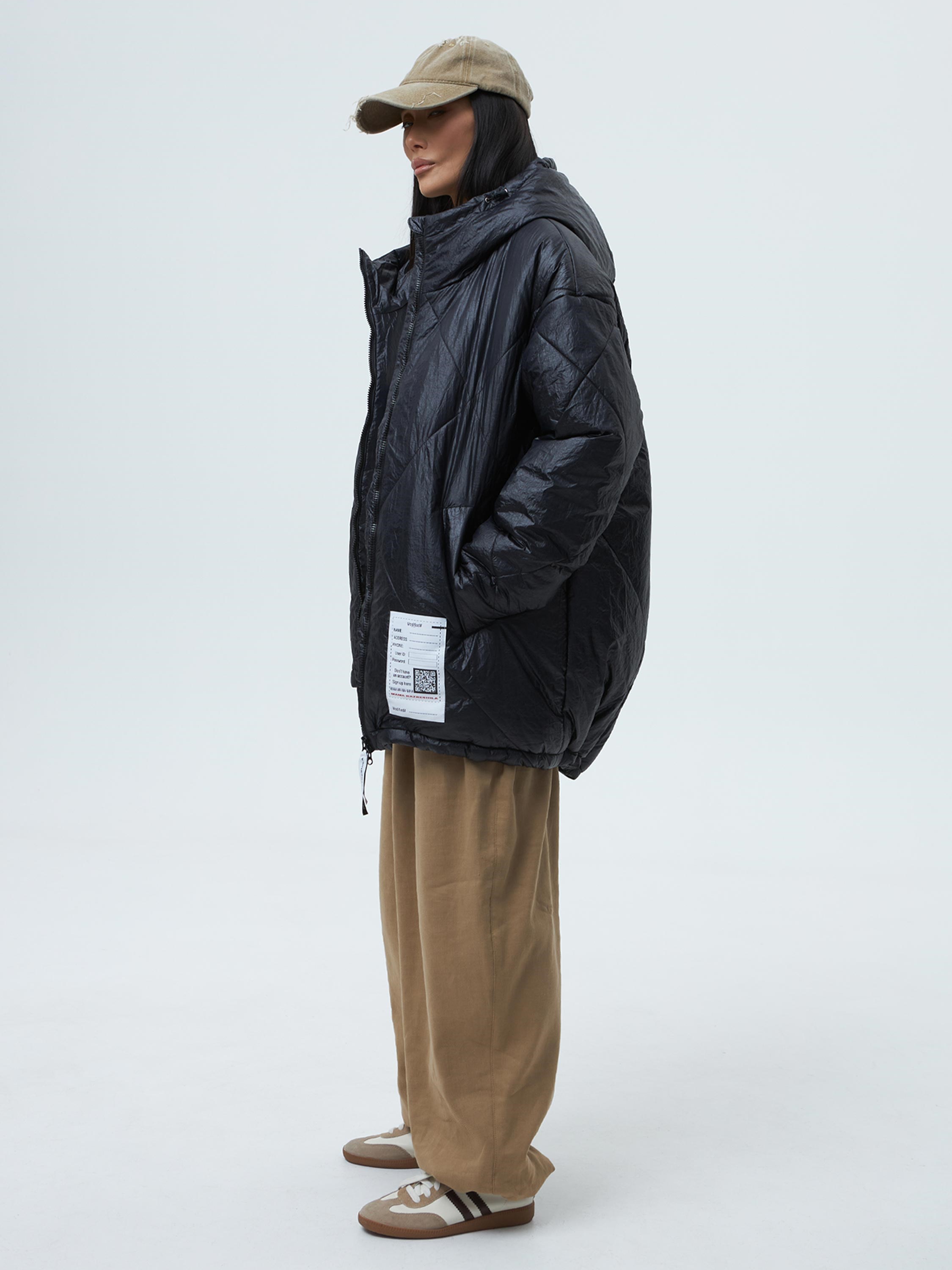 Зимняя куртка оверсайз из плащевой ткани с эффектом мятости.