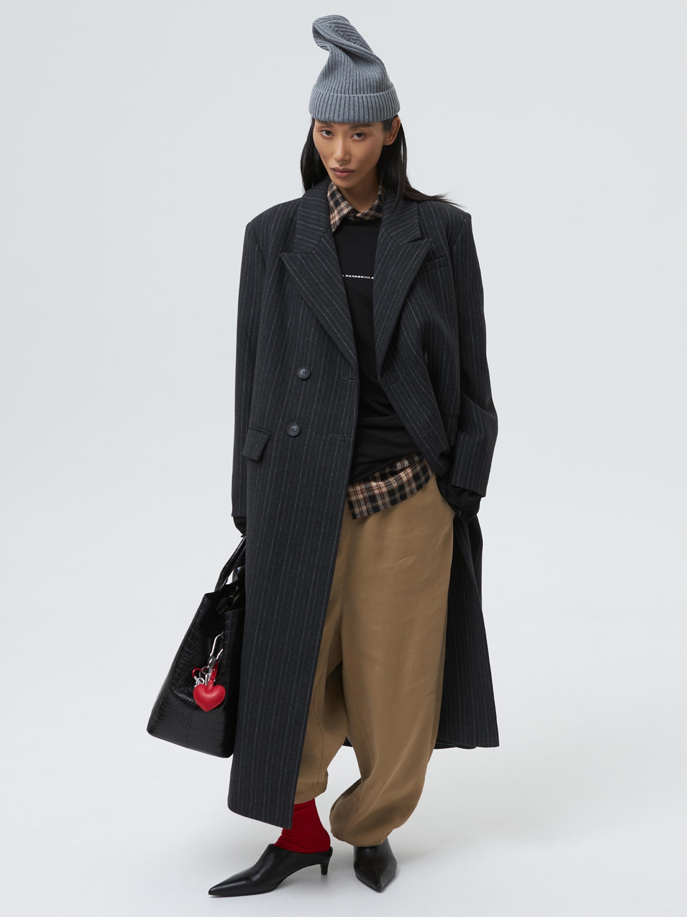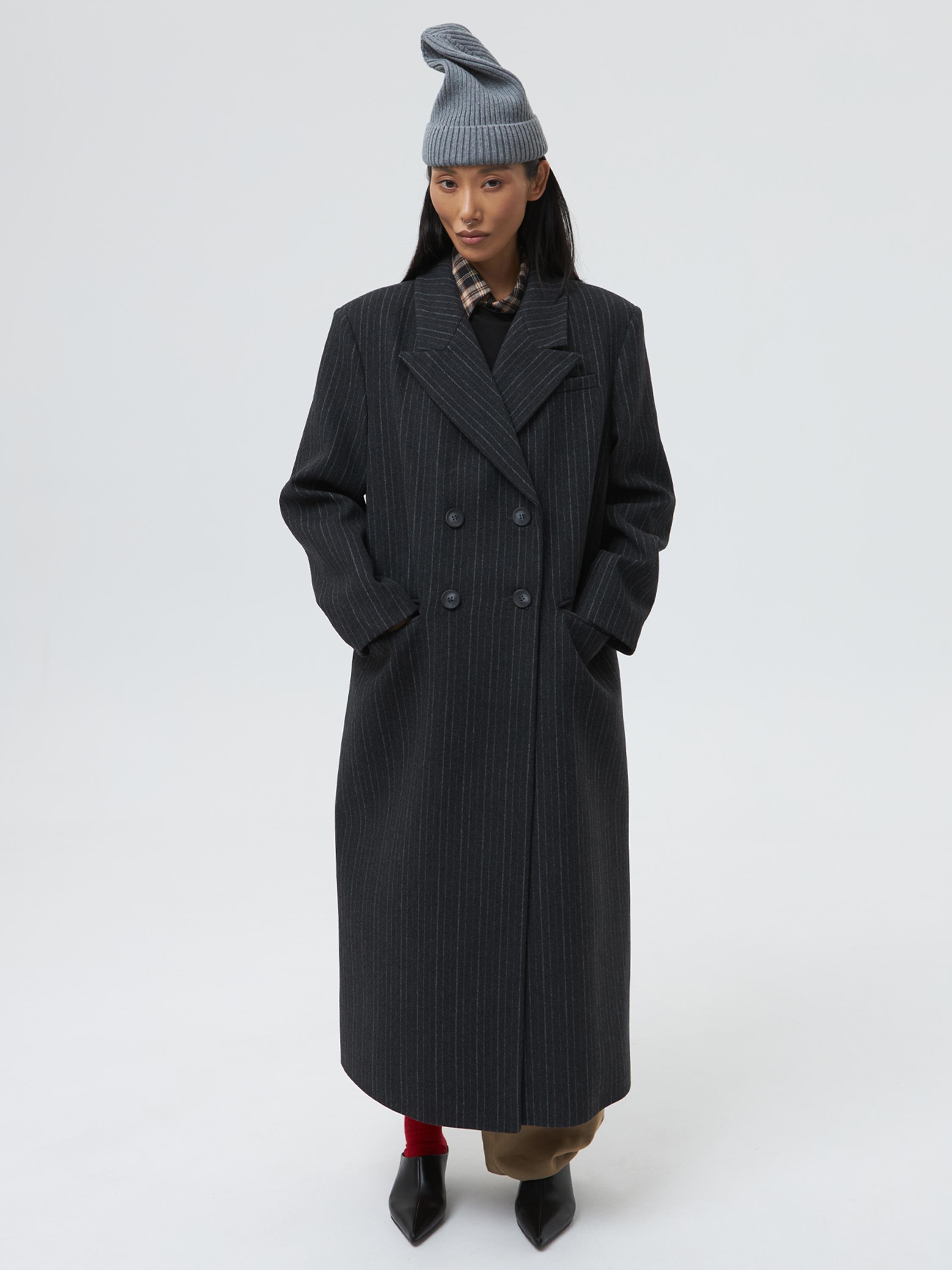 Двубортное пальто в мужском стиле.