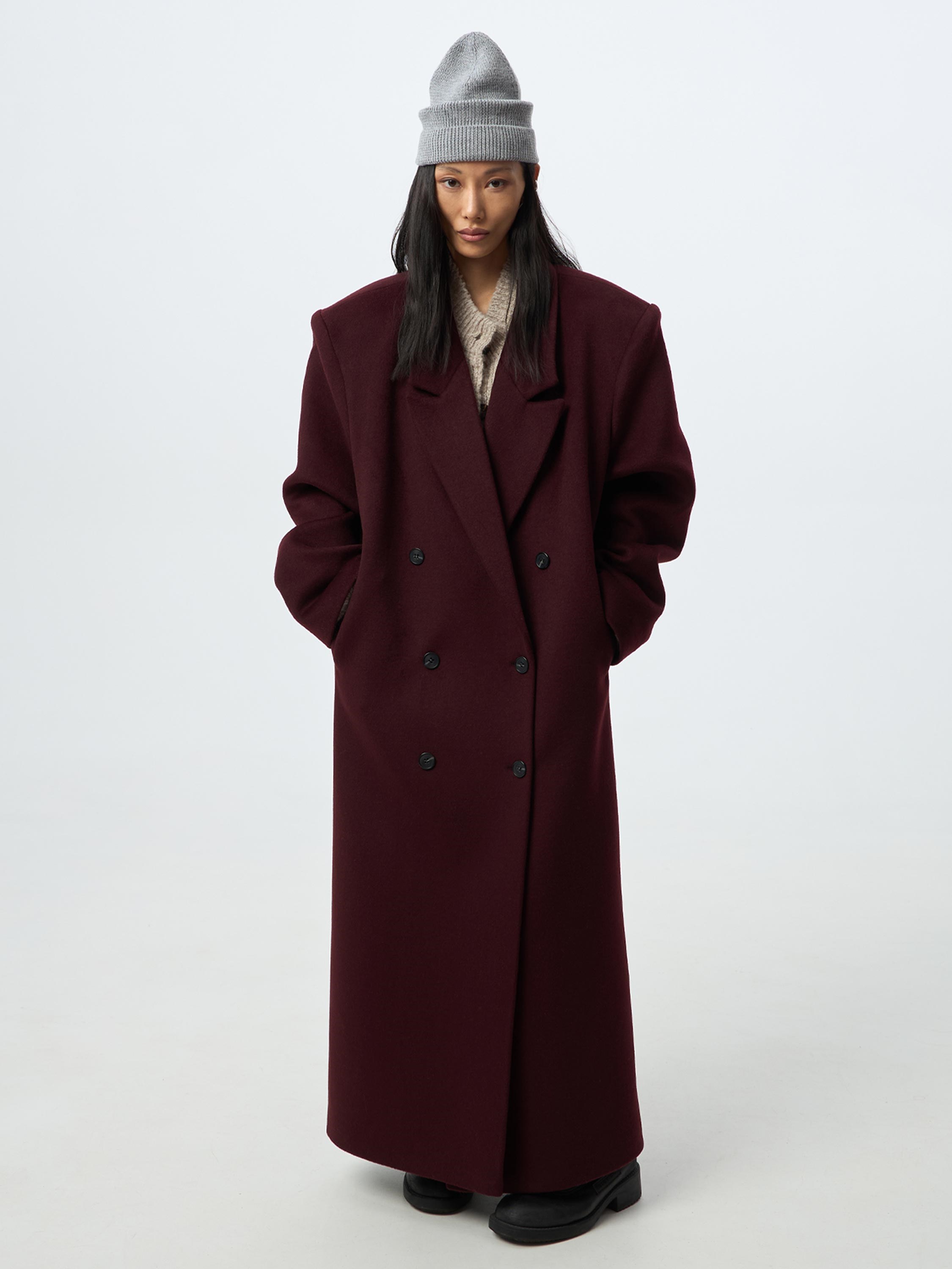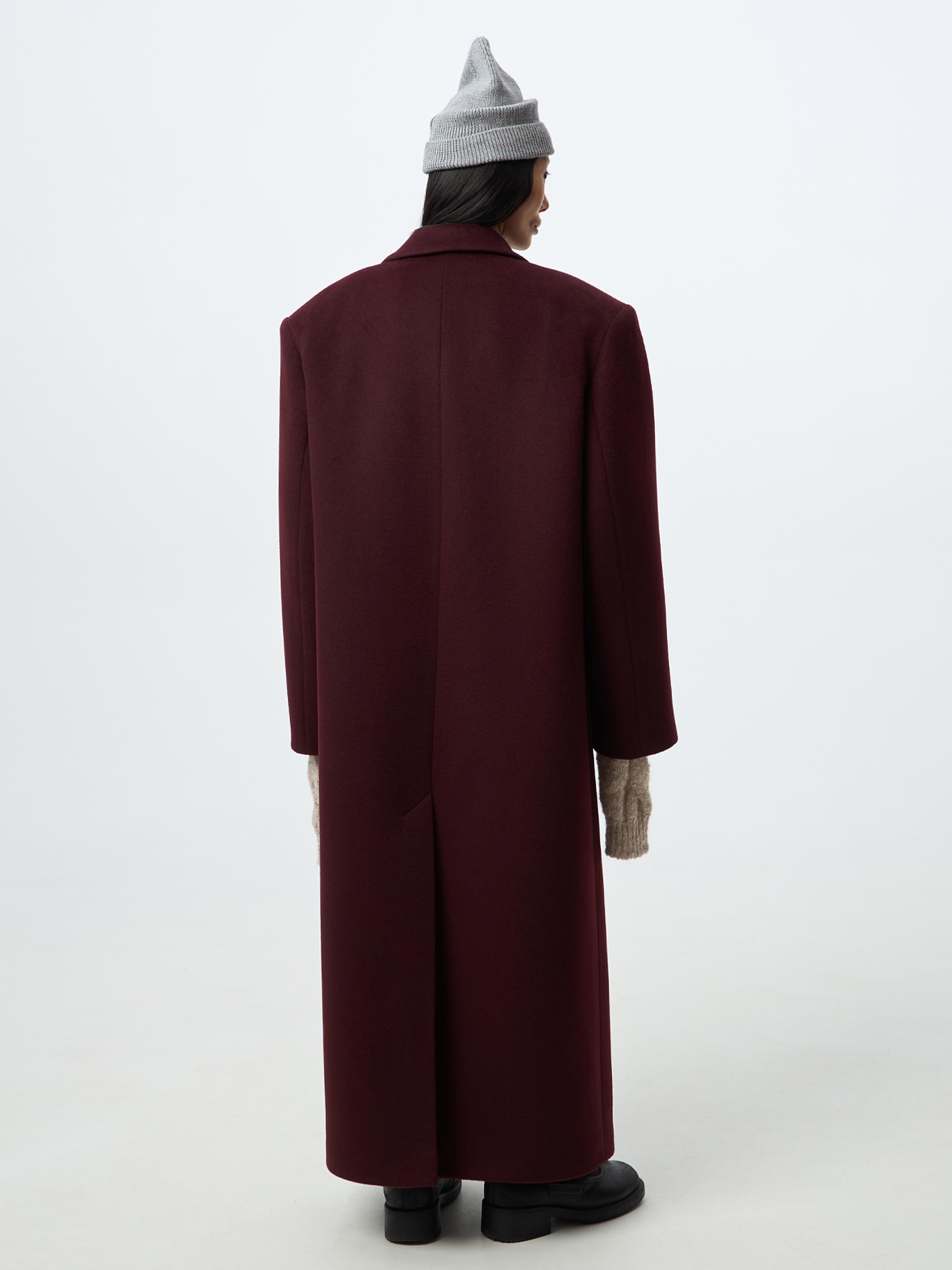Пальто мужского кроя выполнено из полуворса из шерсти, пальто застёгивается на мужскую и женскую стороны.