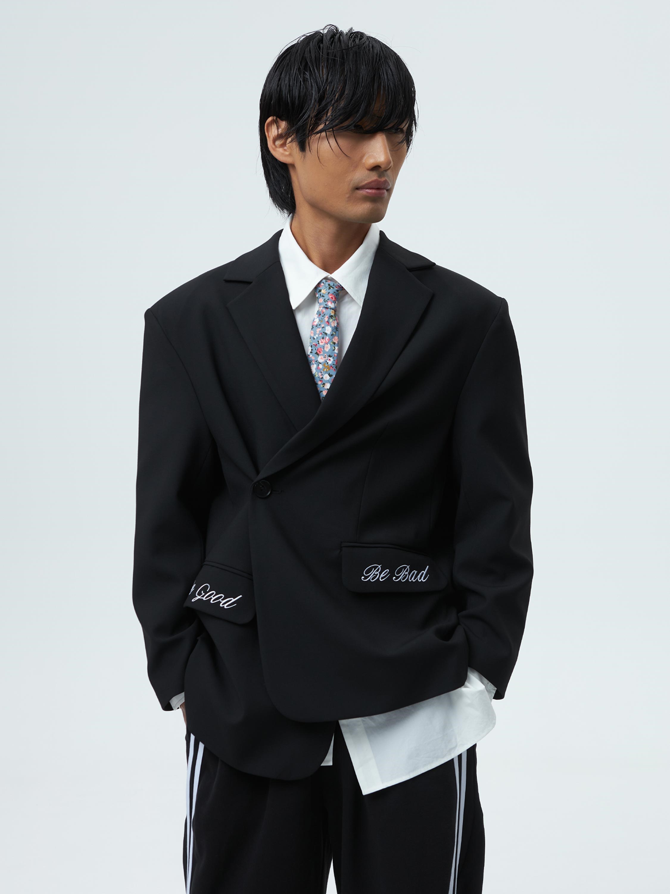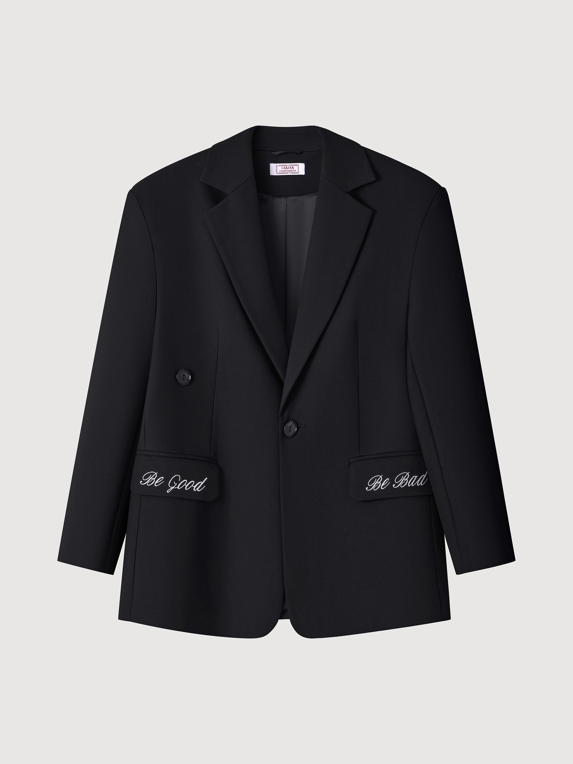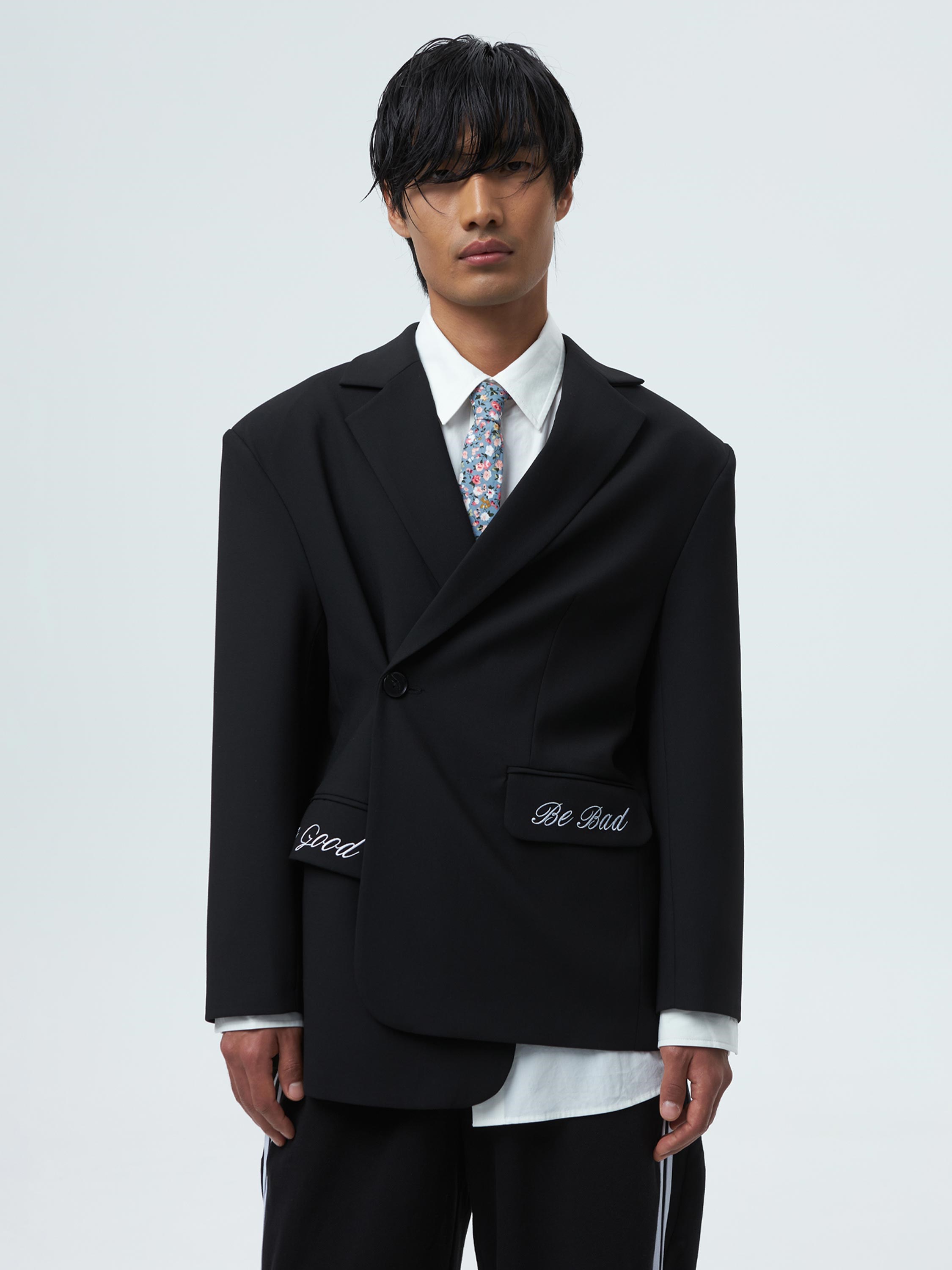 Оригинальный пиджак представляет собой уникальную метафору двойственной природы человеческой натуры. «Будь хорошей, Будь плохой» становятся визуальным олицетворением постоянного выбора, присущего каждому человеку.