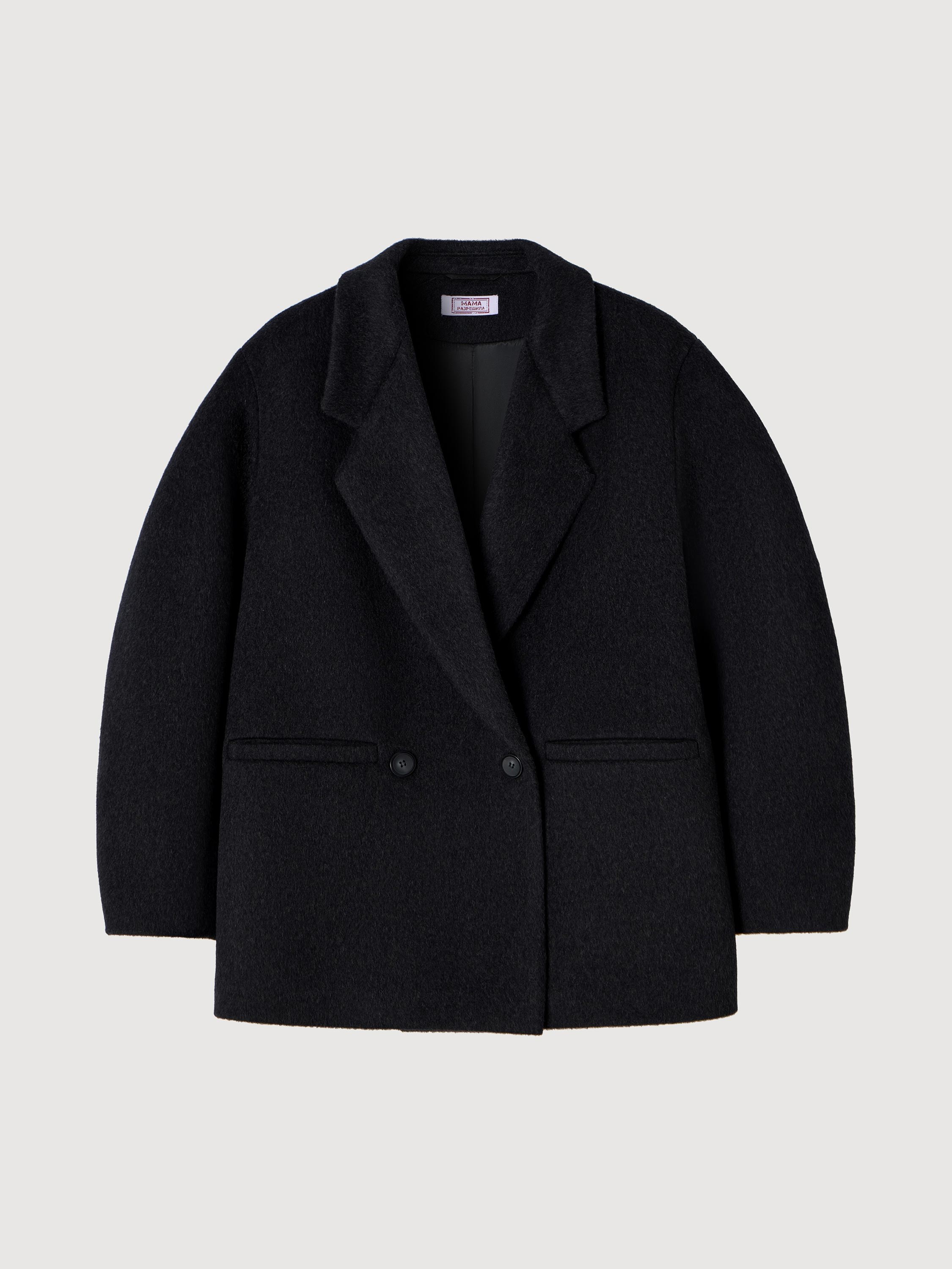 Двубортное полупальто прямого кроя с объёмной плечевой линией. Изделие в полной мере претендует на сигнатурную яркую отсылку к ДНК бренда.