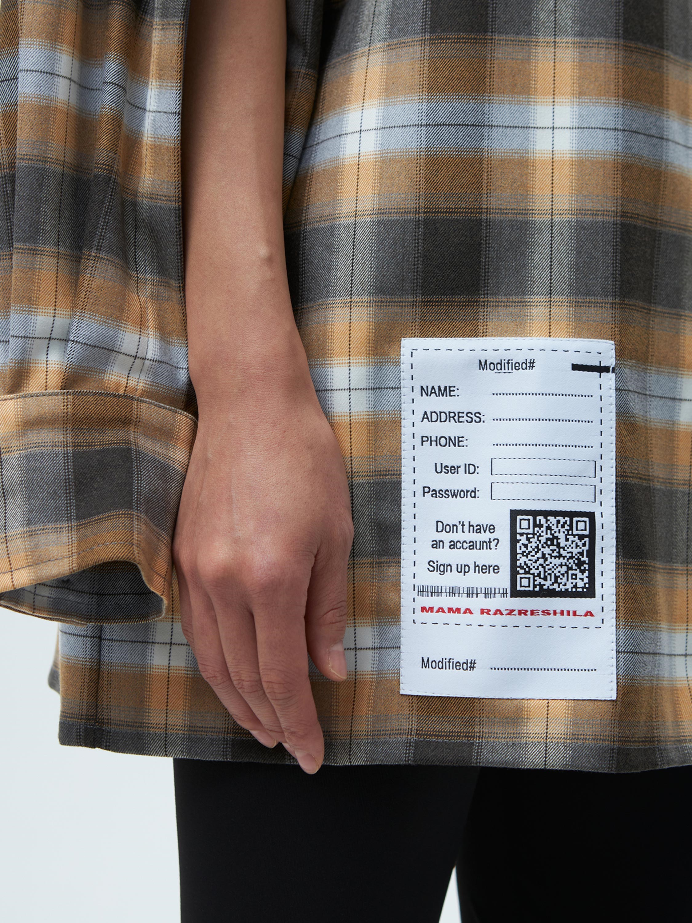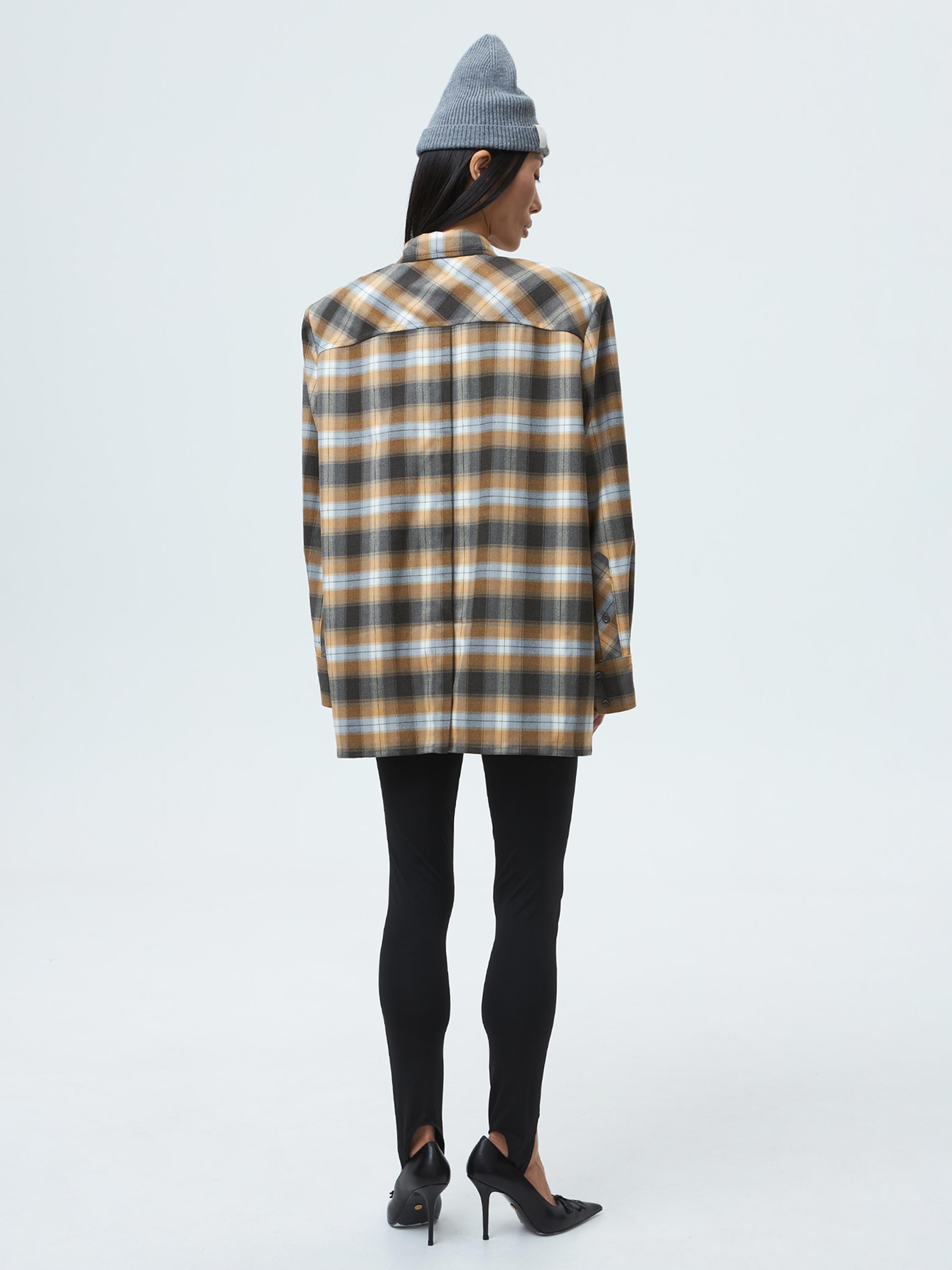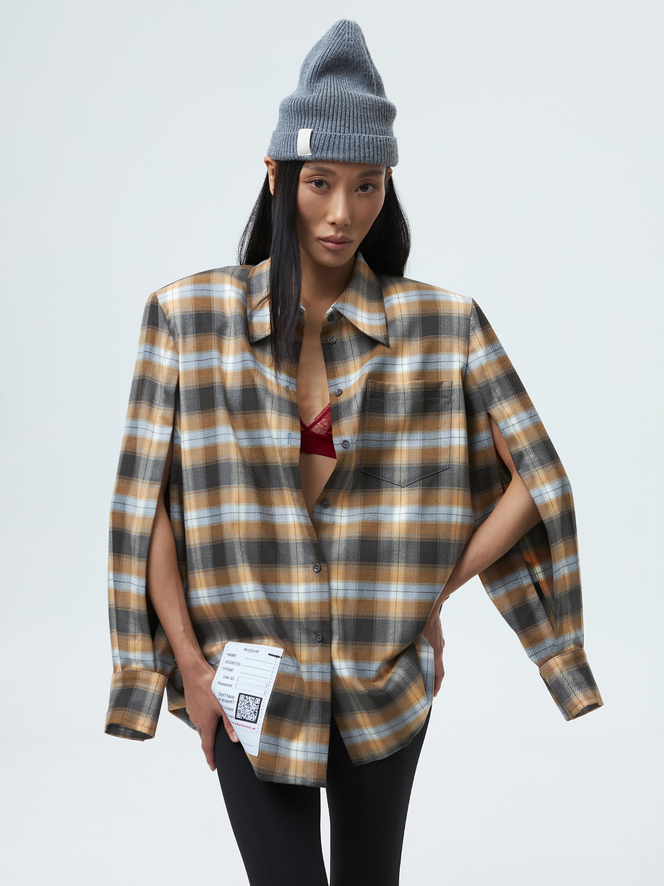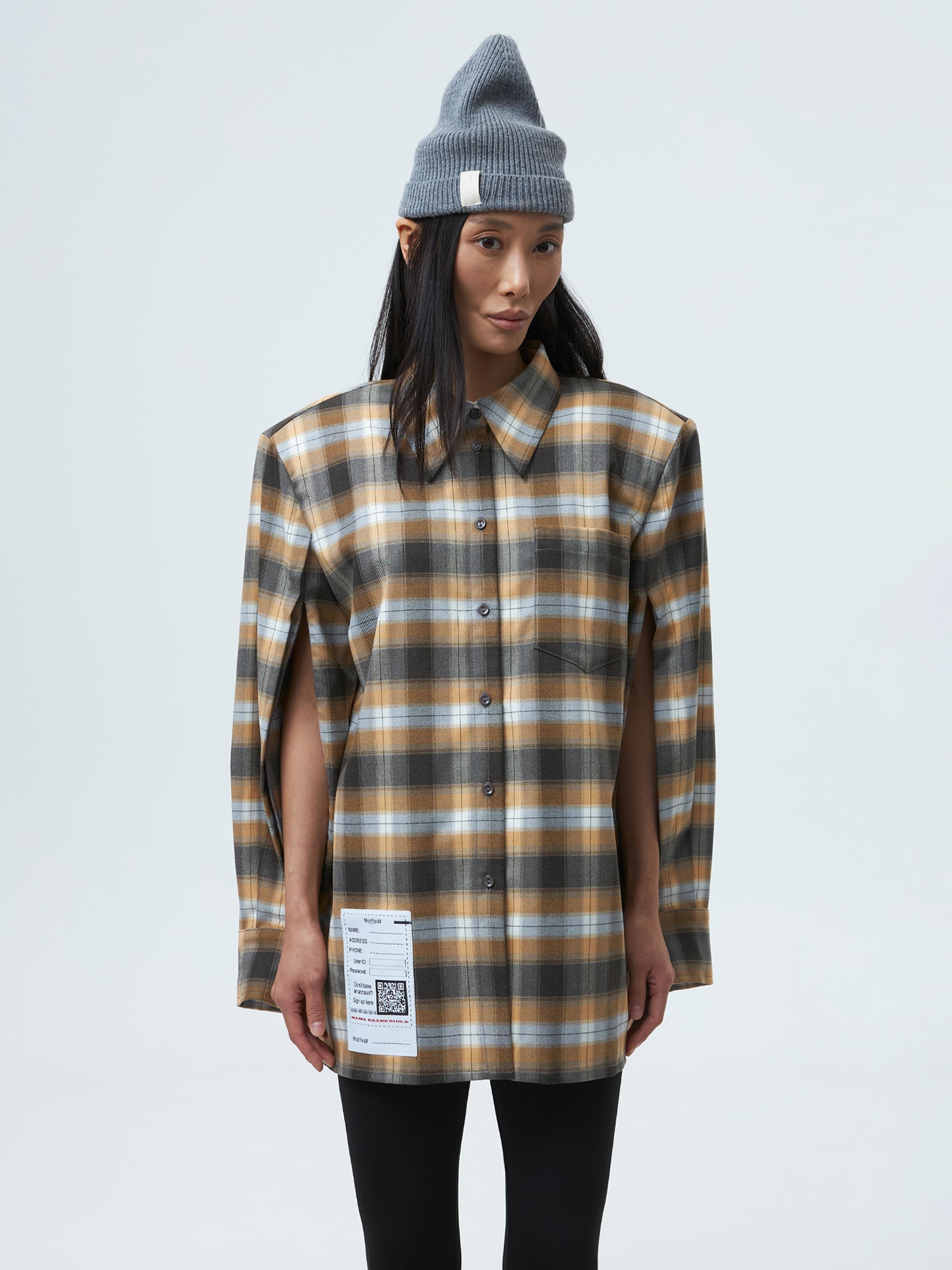 Оригинальная рубашка-кейп в клетку с подплечниками.