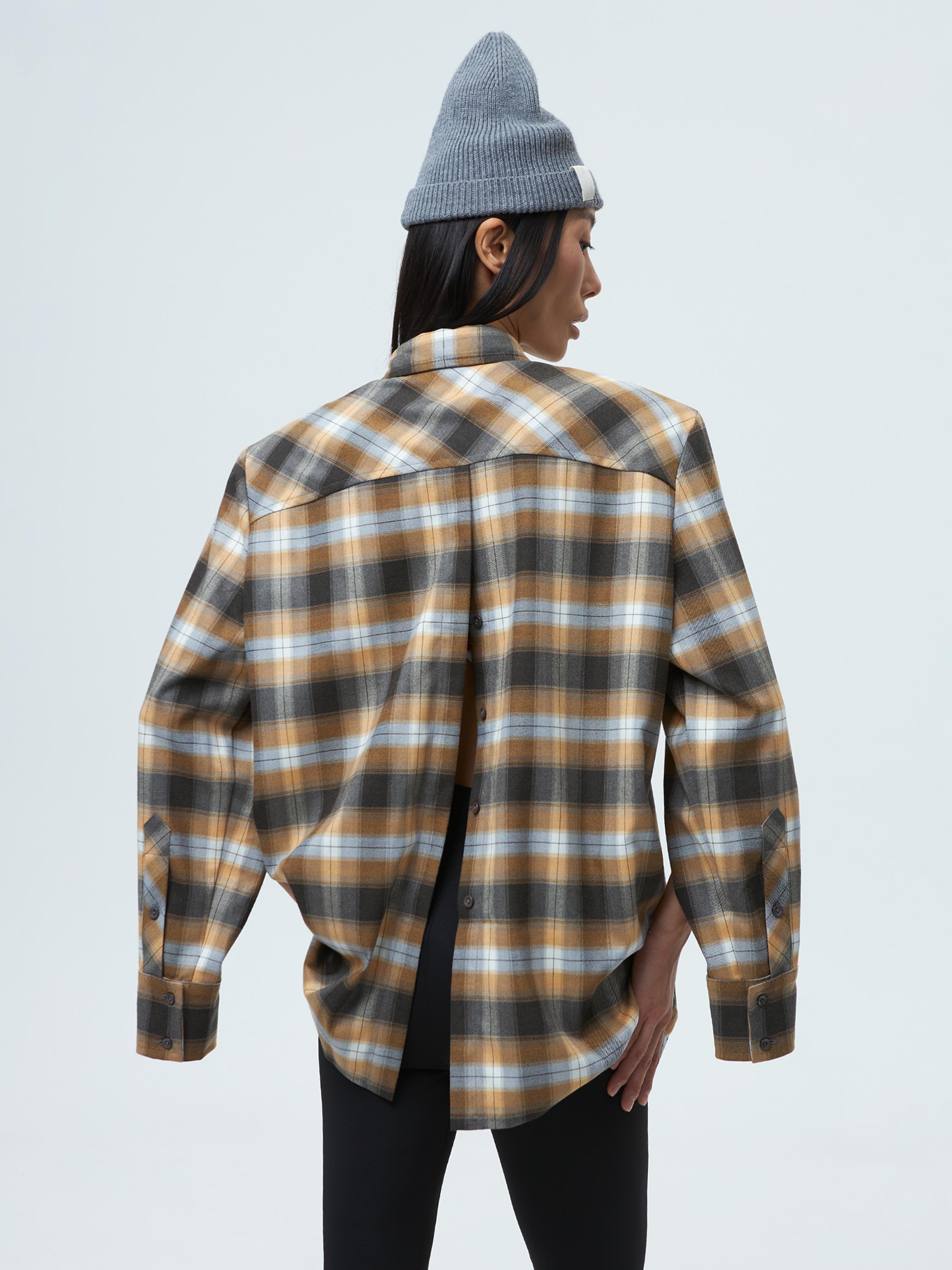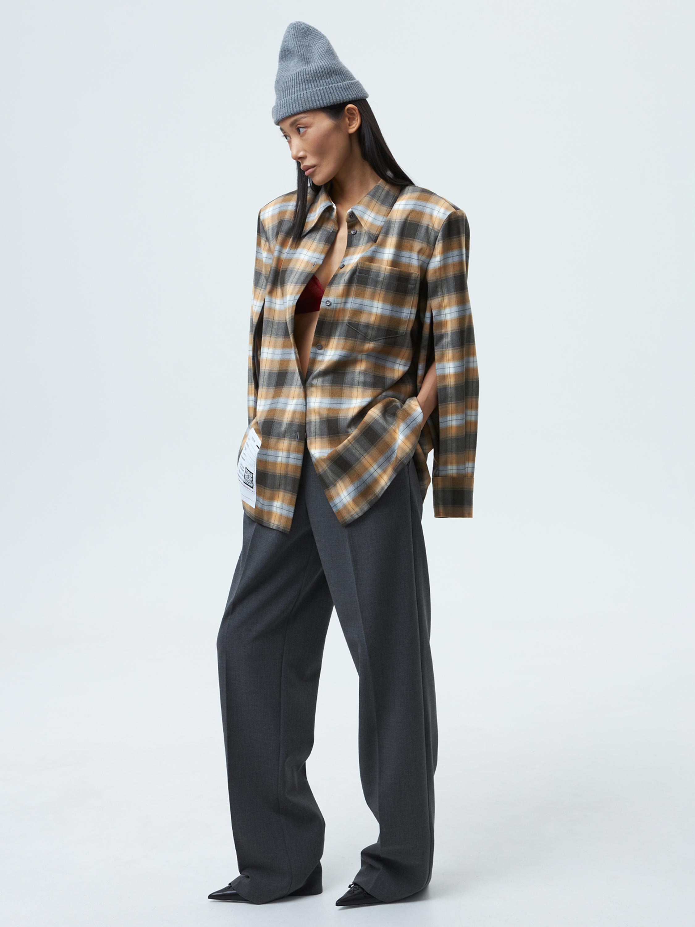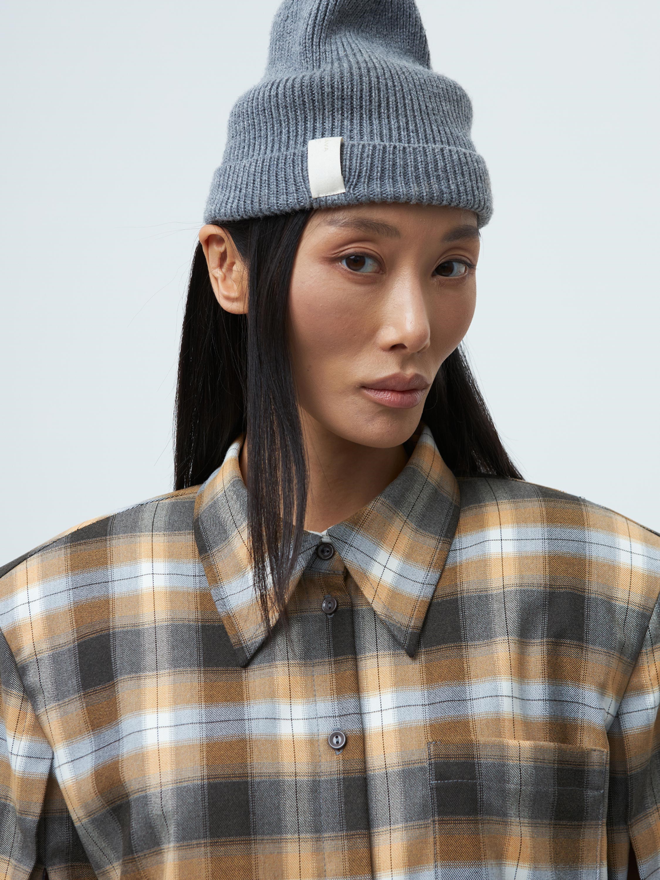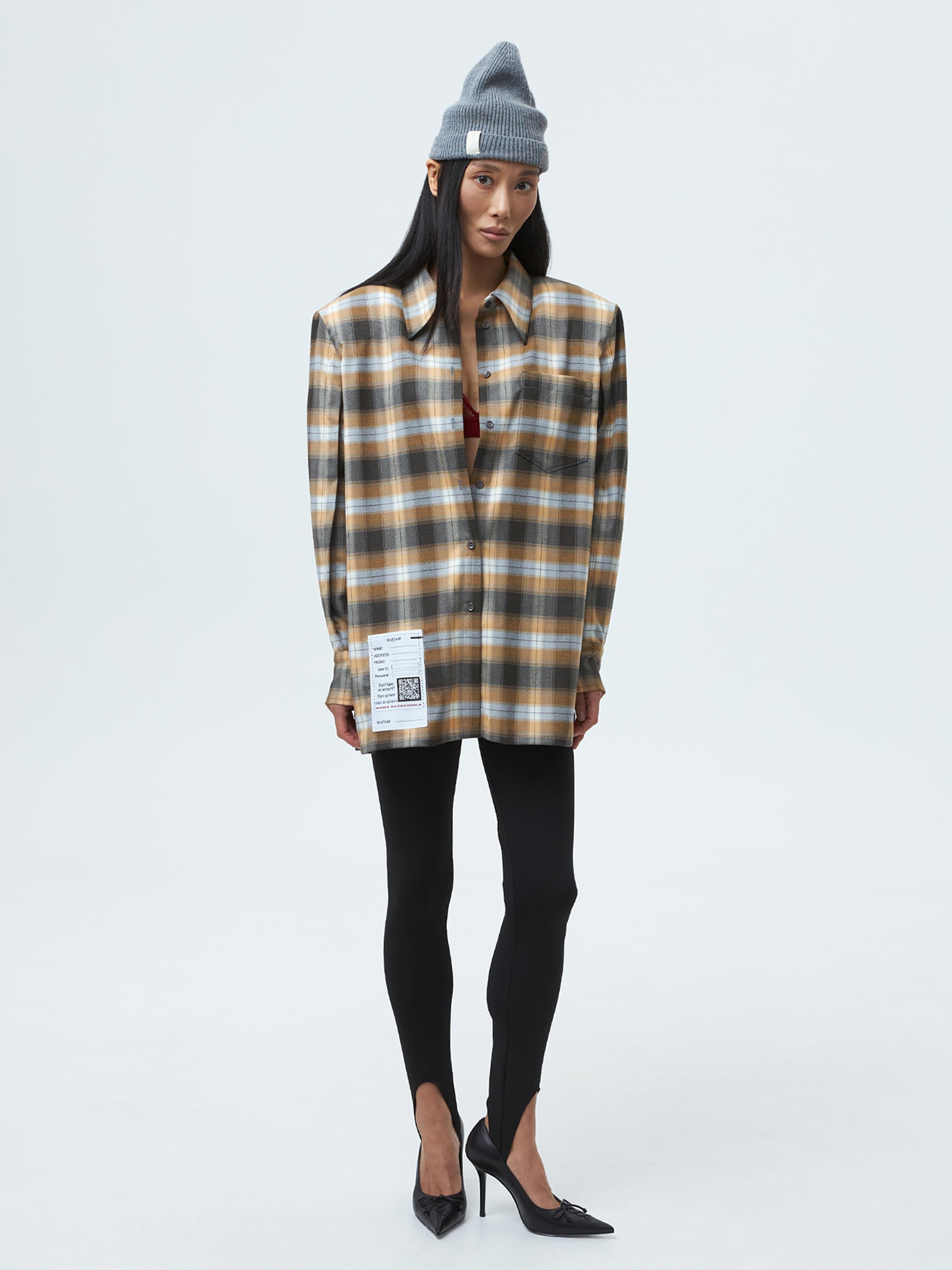 Оригинальная рубашка-кейп в клетку с подплечниками.