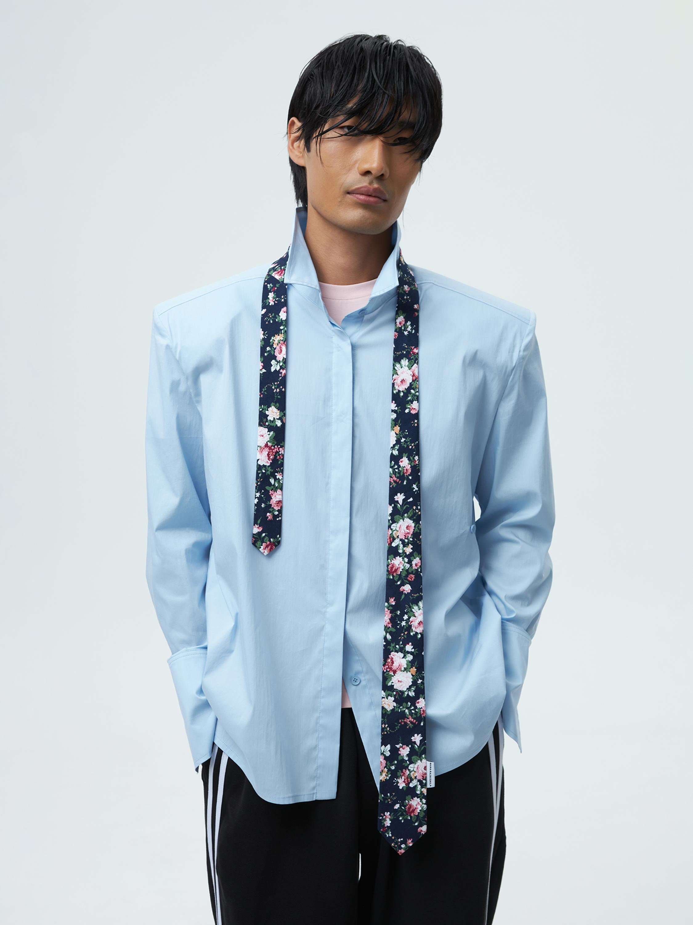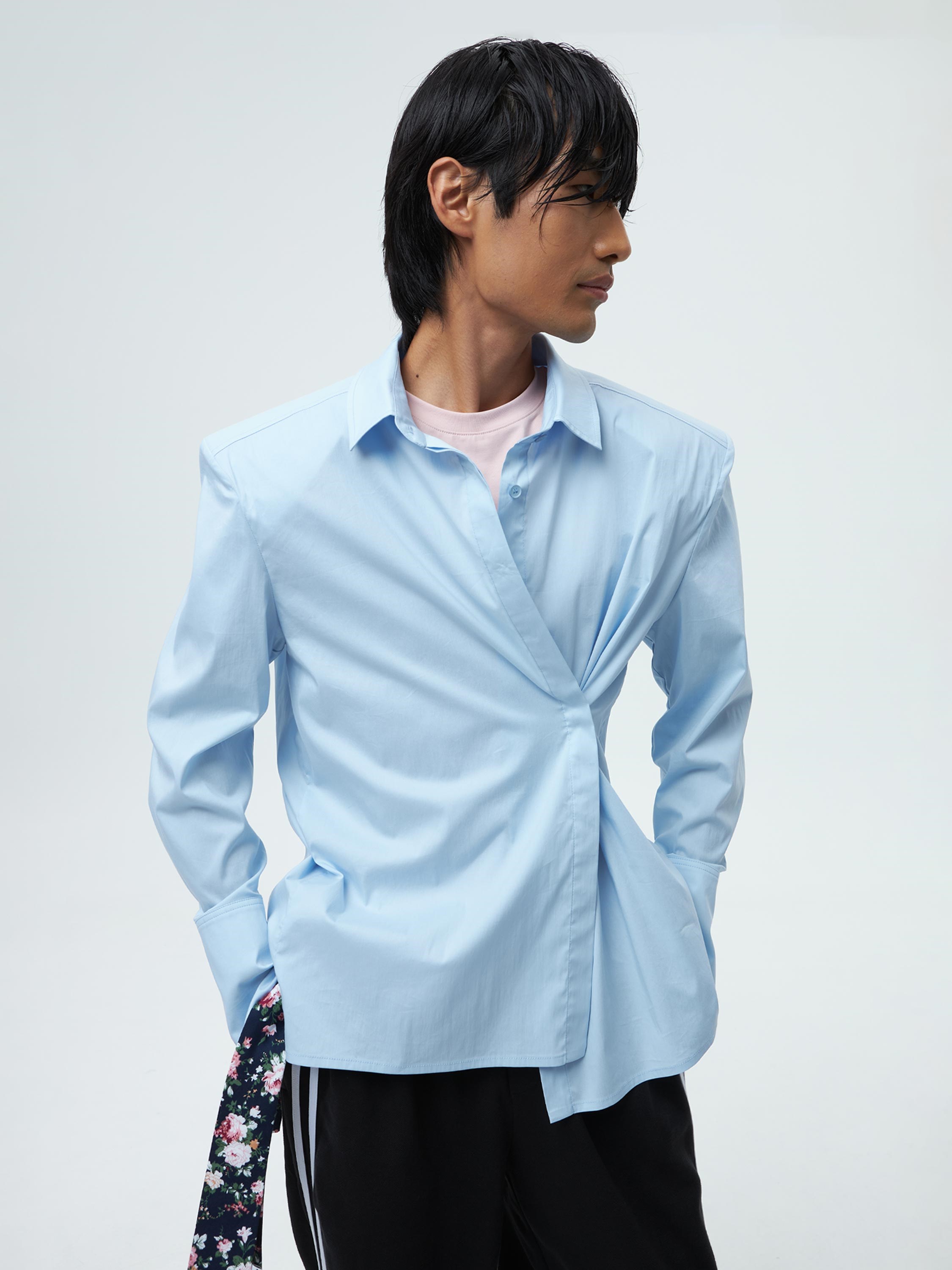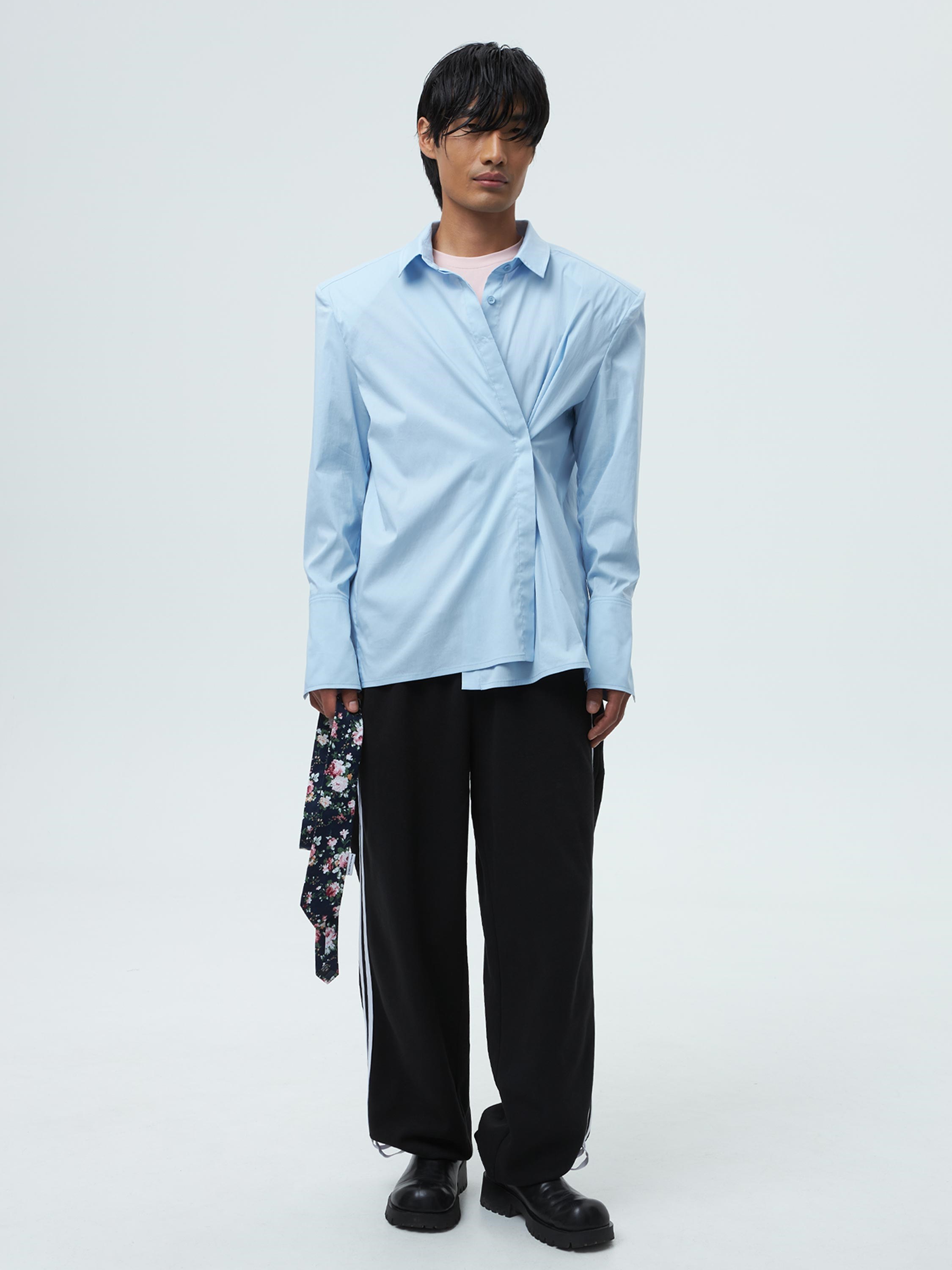 - застегнув рубашку на дополнительную пуговицу, смещённую от центра, усиливается эффект деконструкции.