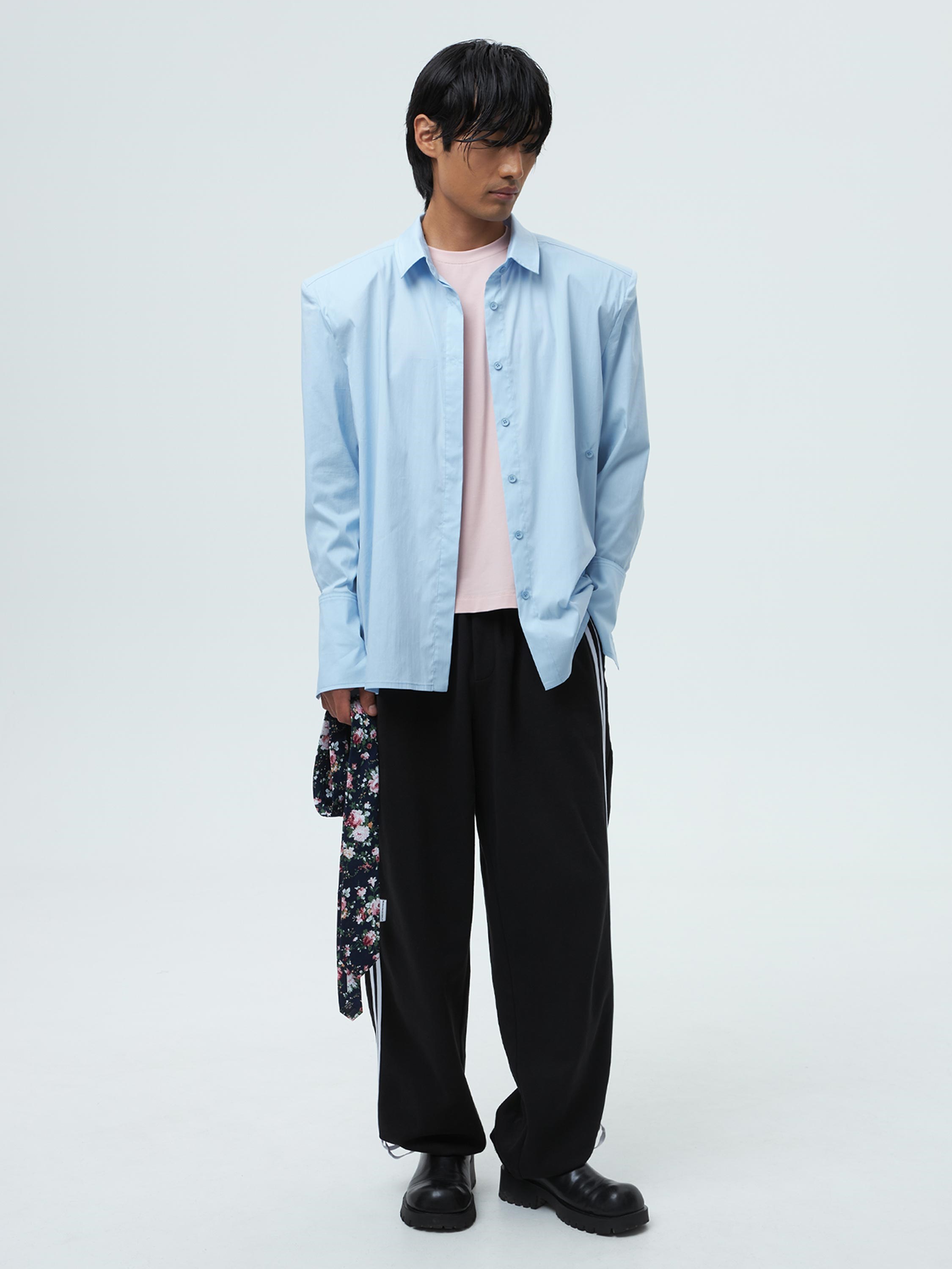 Рубашка с гигантскими плечами из комфортного рубашечного полотна турецкого производства.