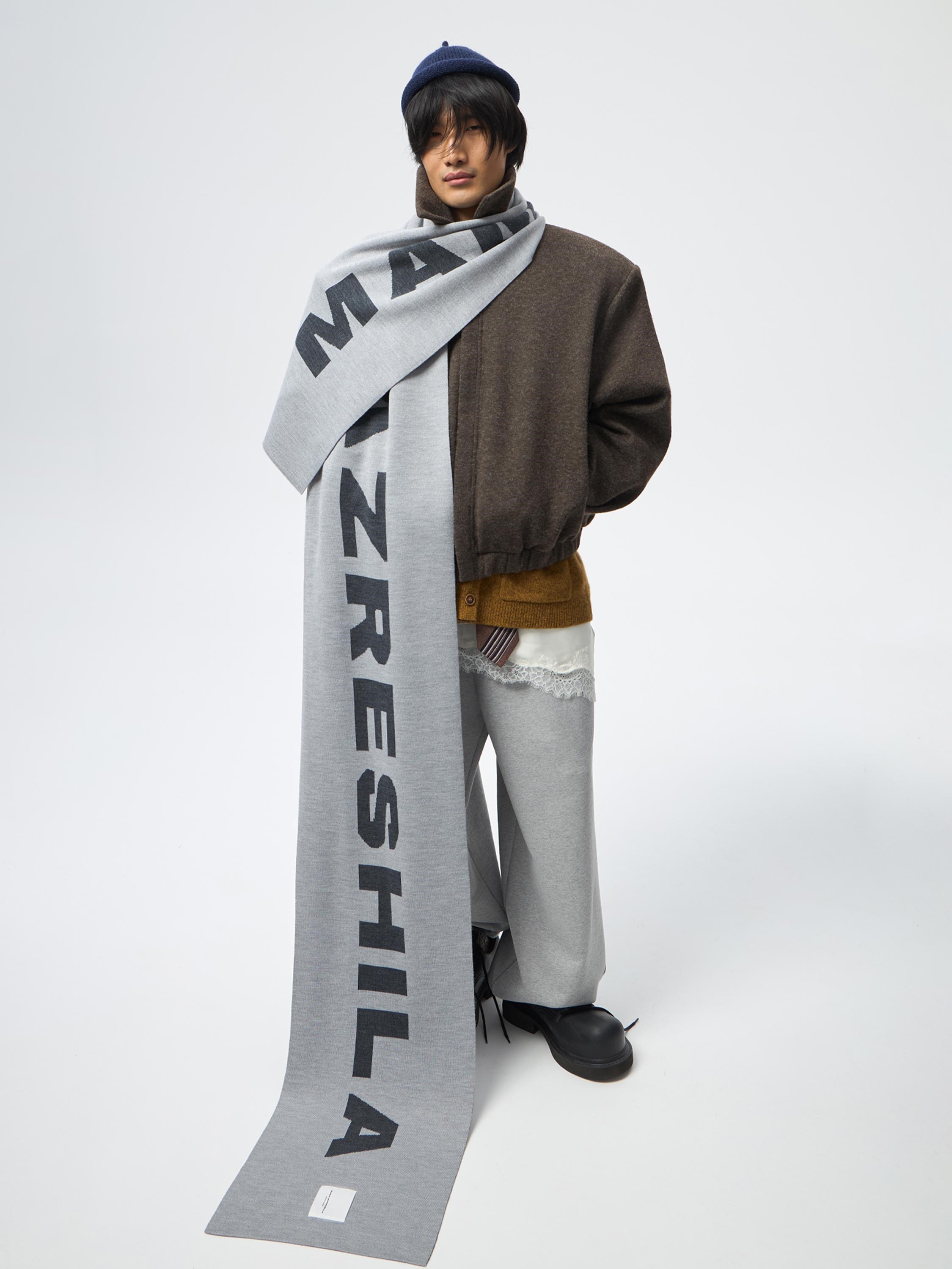 Длинный двусторонний шарф станет идеальным завершением образа. Для создания аксессуара с крупным логотипом бренда мы использовали мягкую шерсть мериноса. Полотно получилось особенно лёгким и нежным, поэтому вещь почти ничего не весит, но при этом сохраняет тепло.