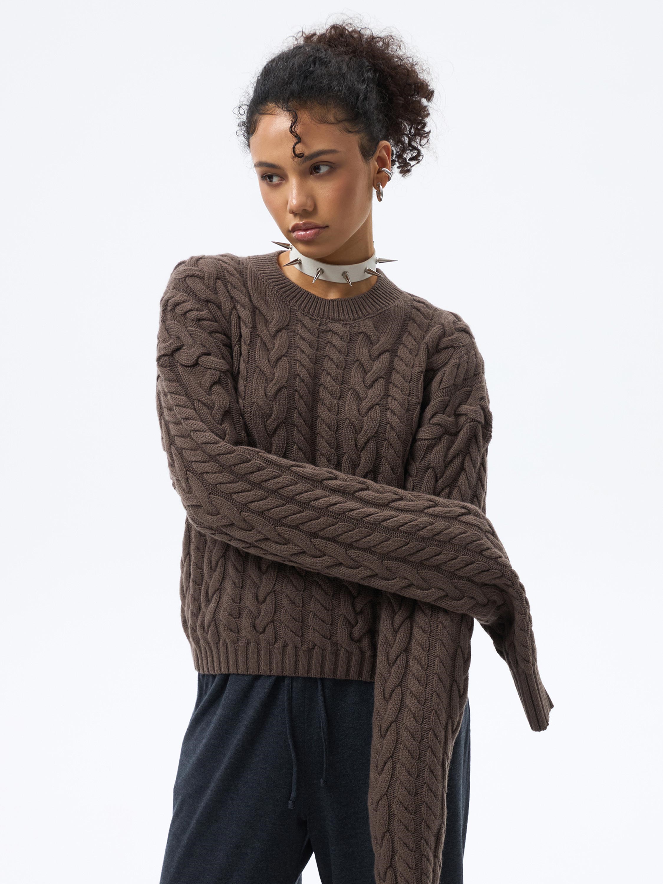 Свитер из шерсти и кашемира с косами и длинными рукавами