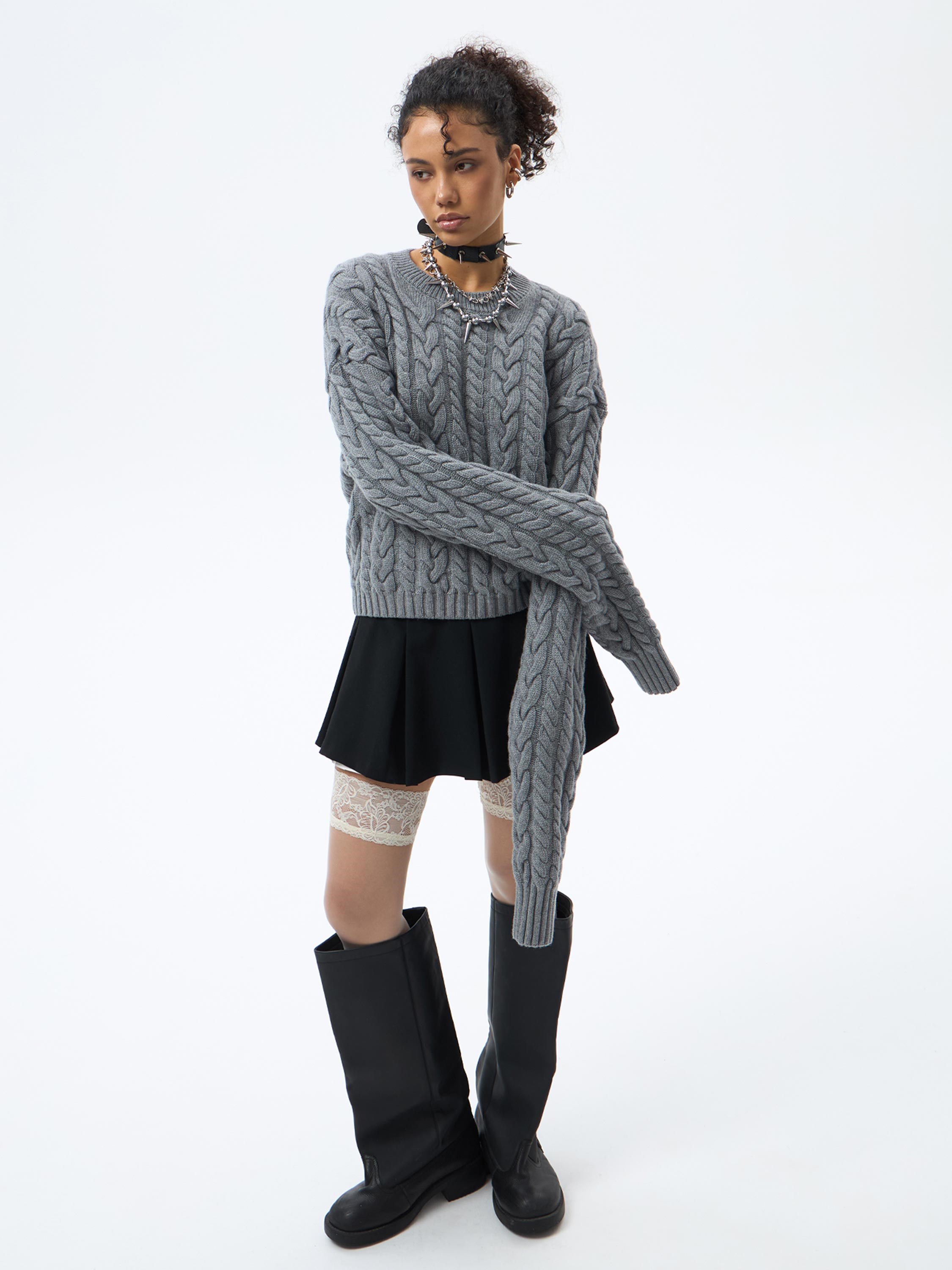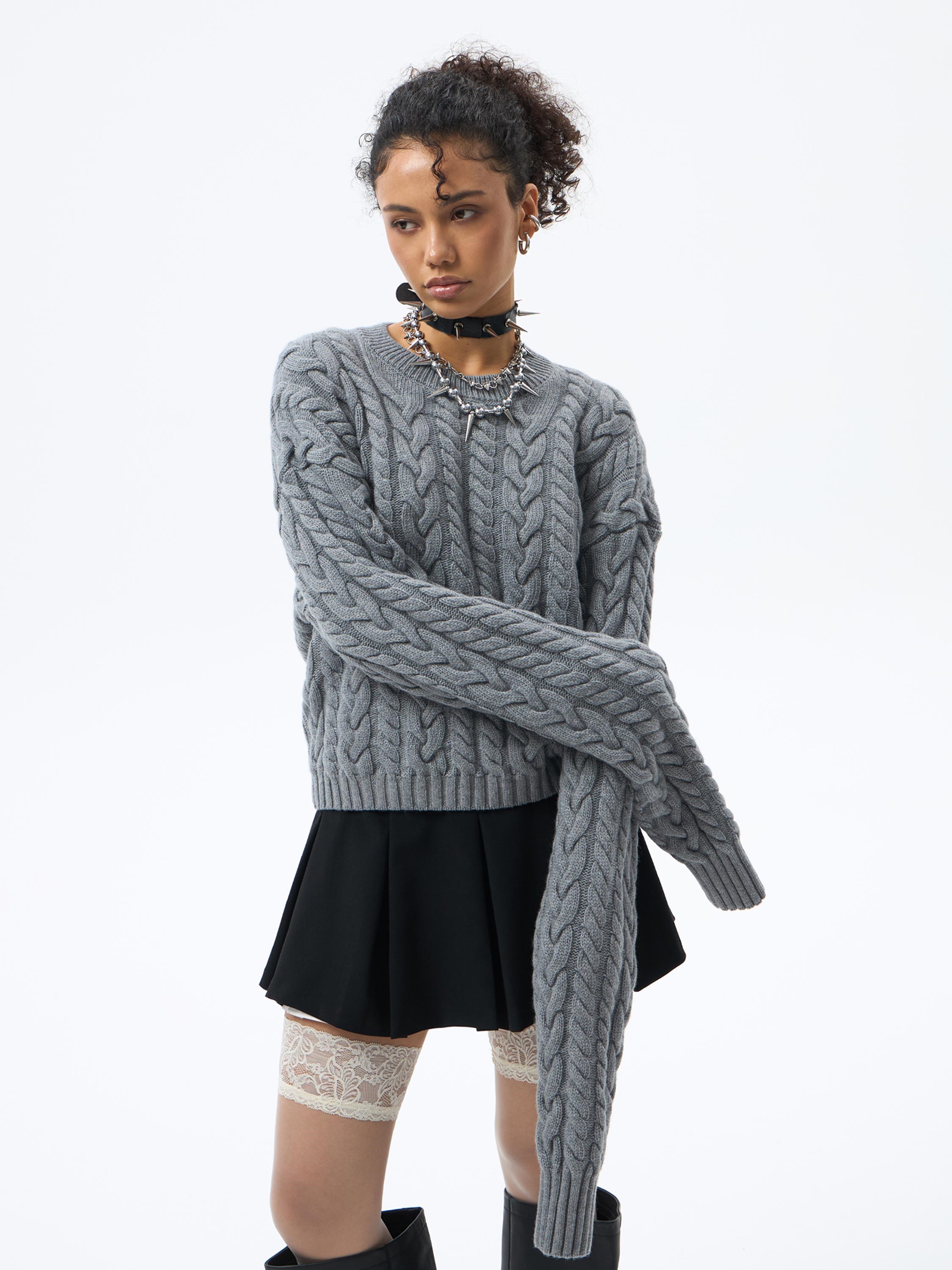 Свитер из шерсти и кашемира с косами и длинными рукавами