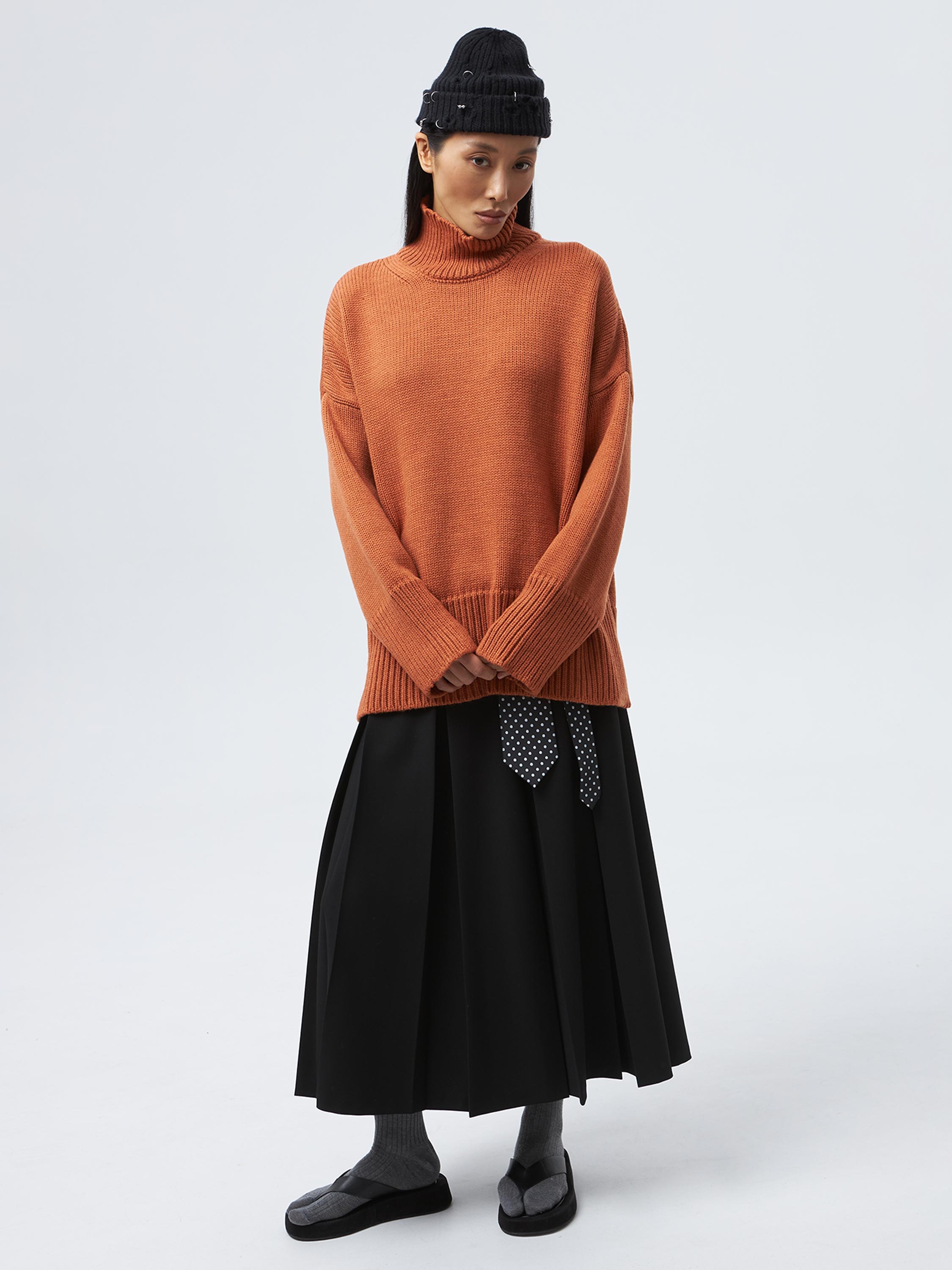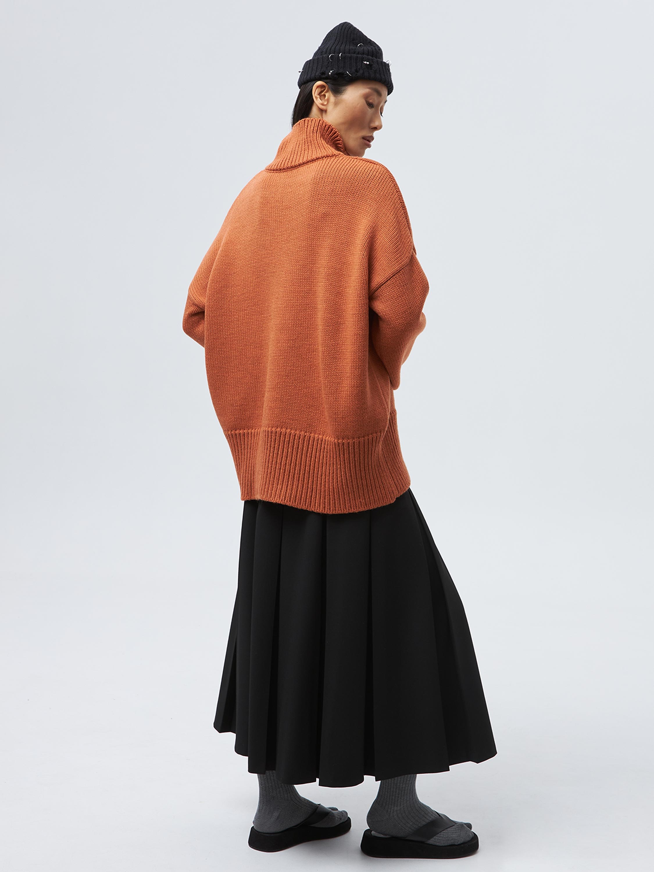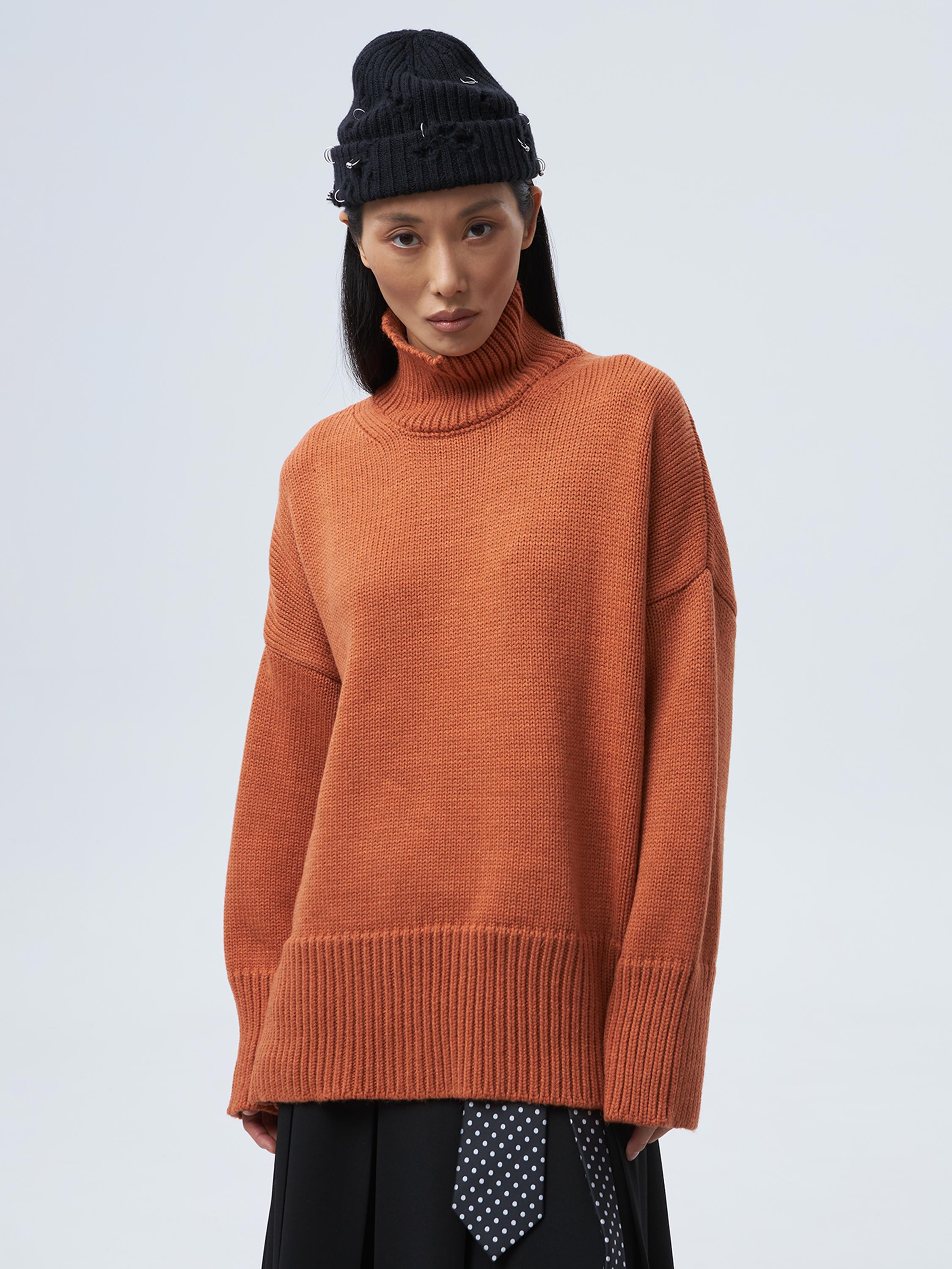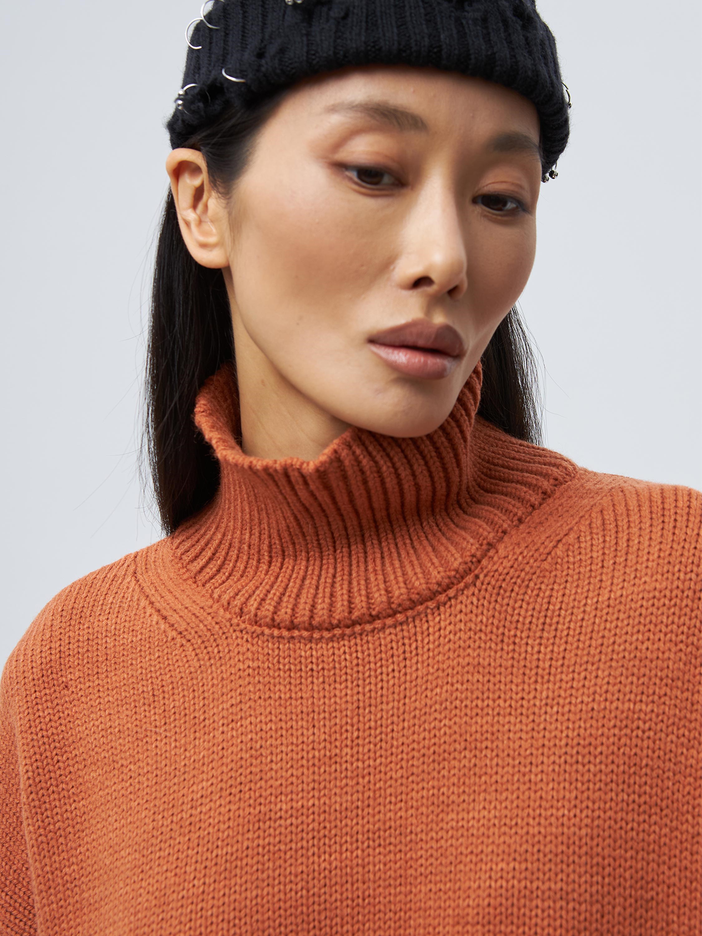 Плетение из плотной нити, свитер хорошо держит форму и сохраняет тепло.