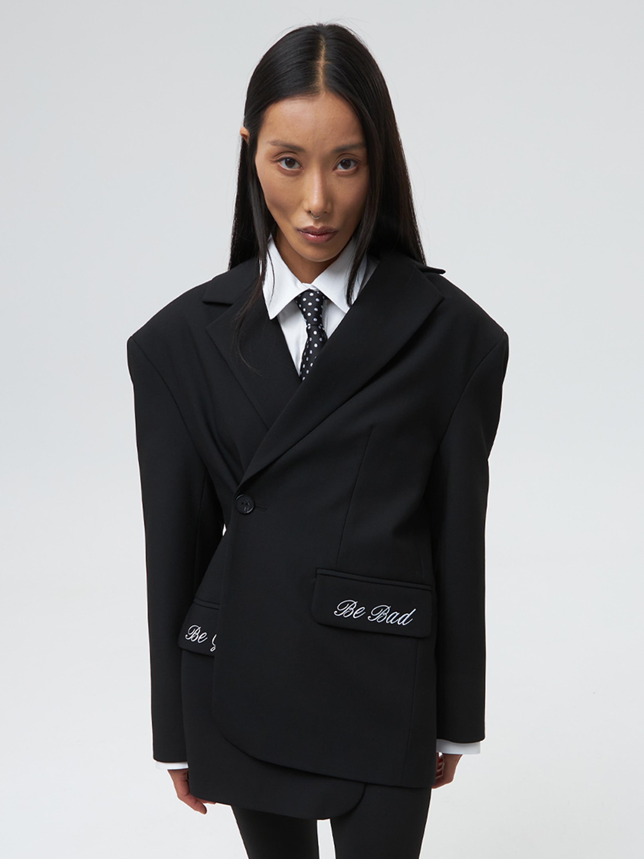 Оригинальный пиджак представляет собой уникальную метафору двойственной природы человеческой натуры. «Будь хорошей, Будь плохой» становятся визуальным олицетворением постоянного выбора, присущего каждому человеку.